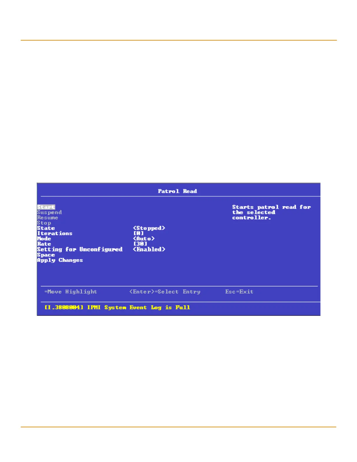 1. To select a mode for the patrol read operation, highlight Mode and press Enter. Select any of the following modes