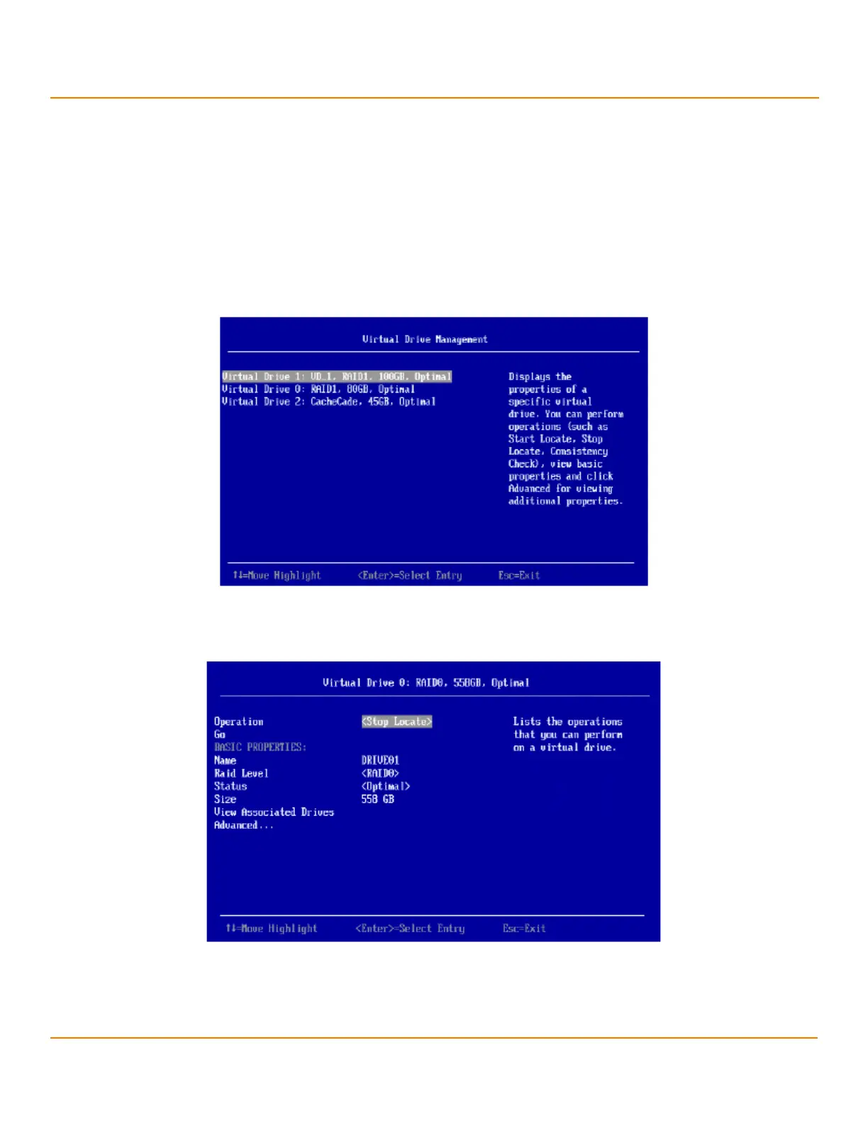 The menu lists all the virtual drives that currently exist on the controller. Highlight the virtual drive you want to