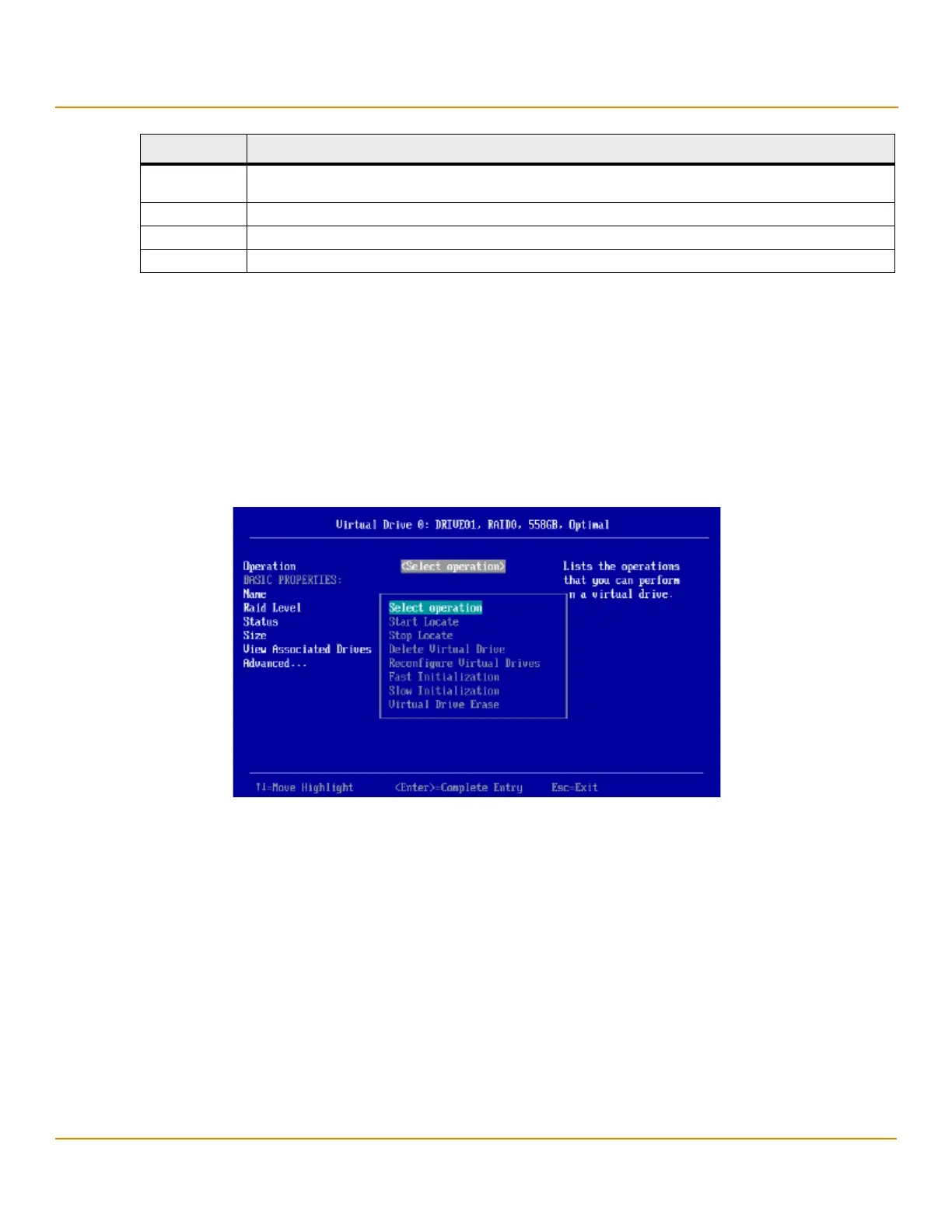 Operation and press Enter to start the operation for the currently selected virtual drive.