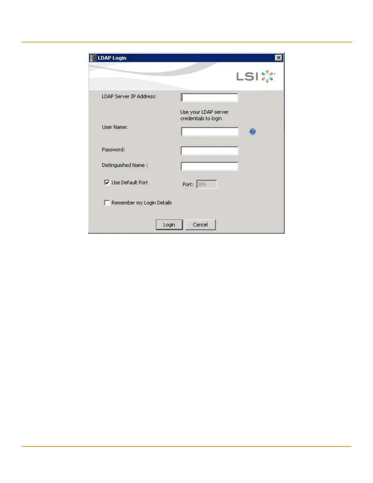 2. Enter the LDAP server's user name and password in the User Name and Password fields, respectively. An