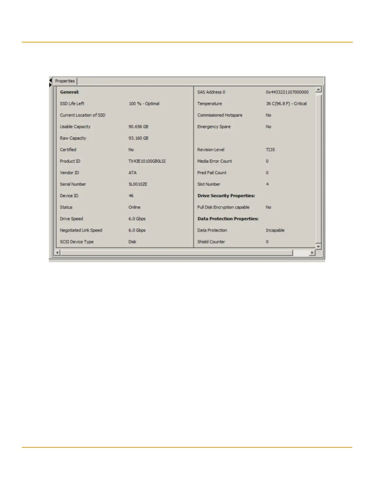 2. Click the physical drive in Shield state on Physical view or Logical view of the device tree to view the properties.