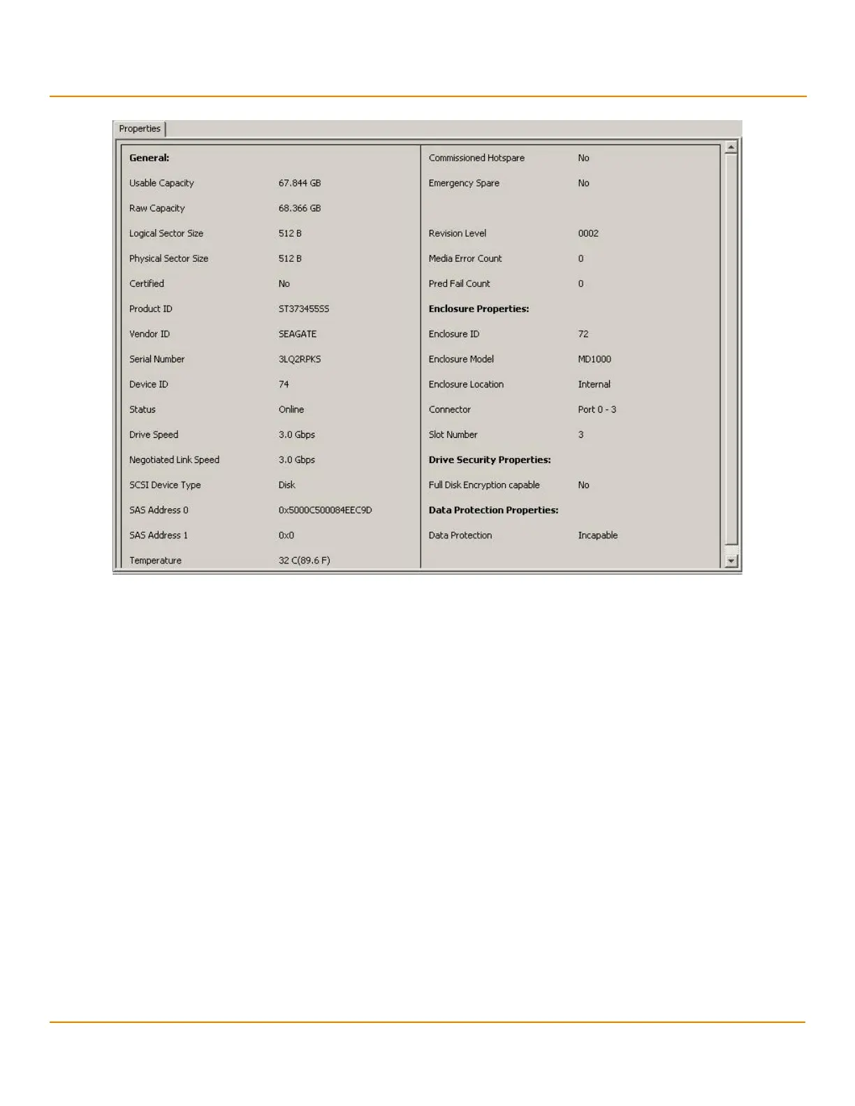 Figure 135 Emergency Spare- Physical Drive Properties
