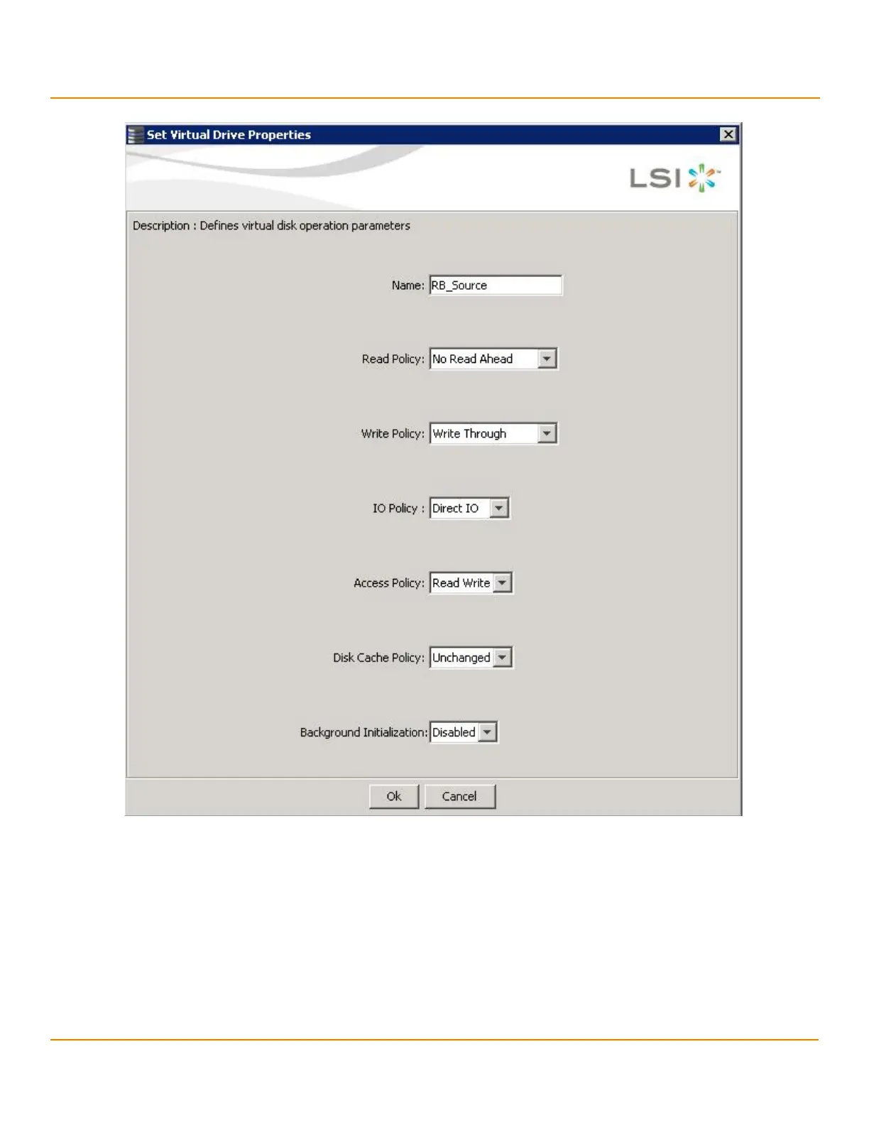 NOTE You cannot select the Disk cache policy for the virtual drives having