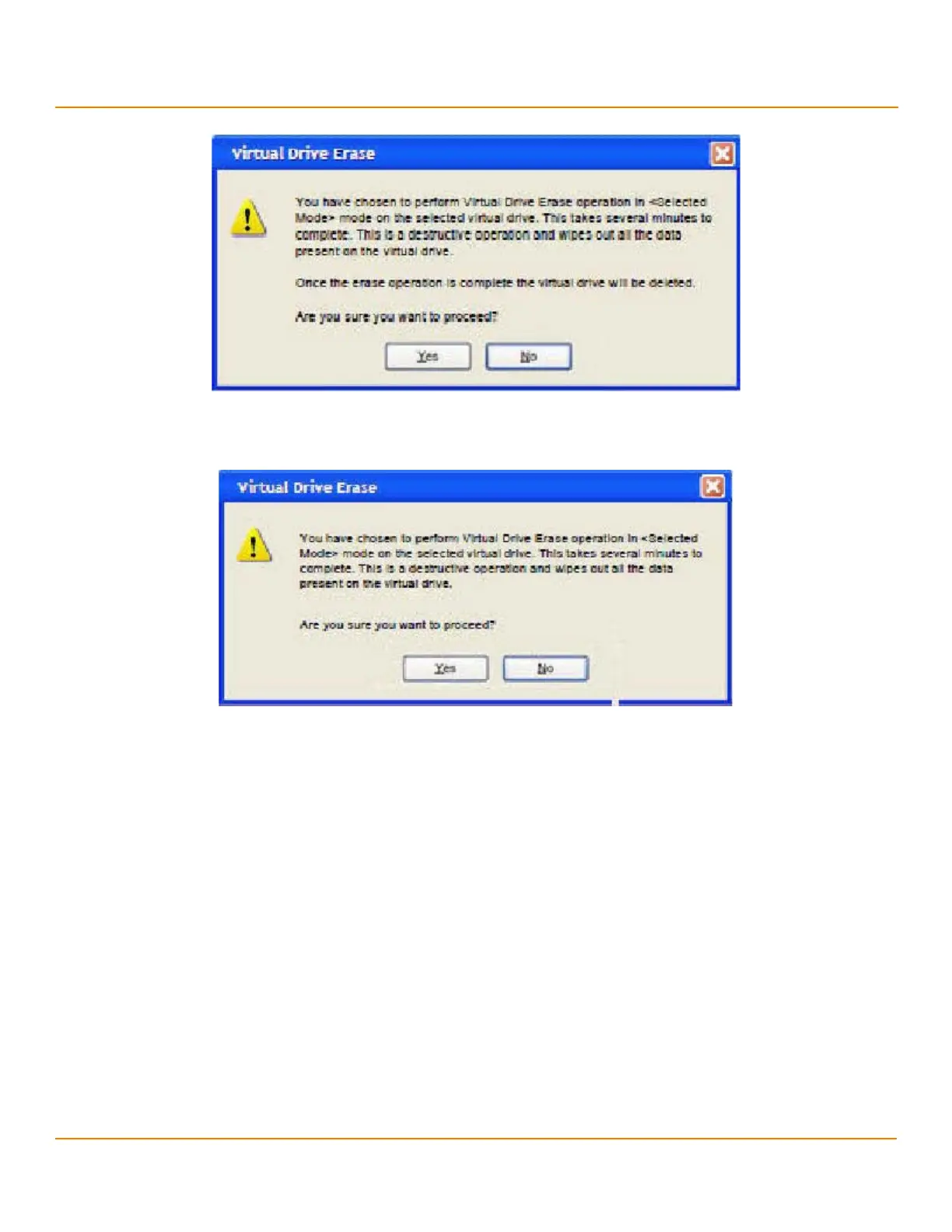 Figure 146 Warning Message for Virtual Drive Erase without Virtual Drive Delete