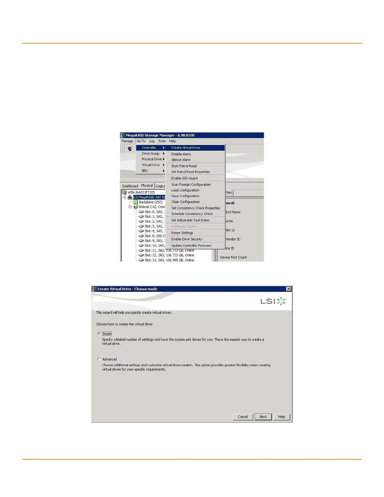 — Select the controller node, and select Go To > Controller > Create Virtual Drive in the menu bar, as shown