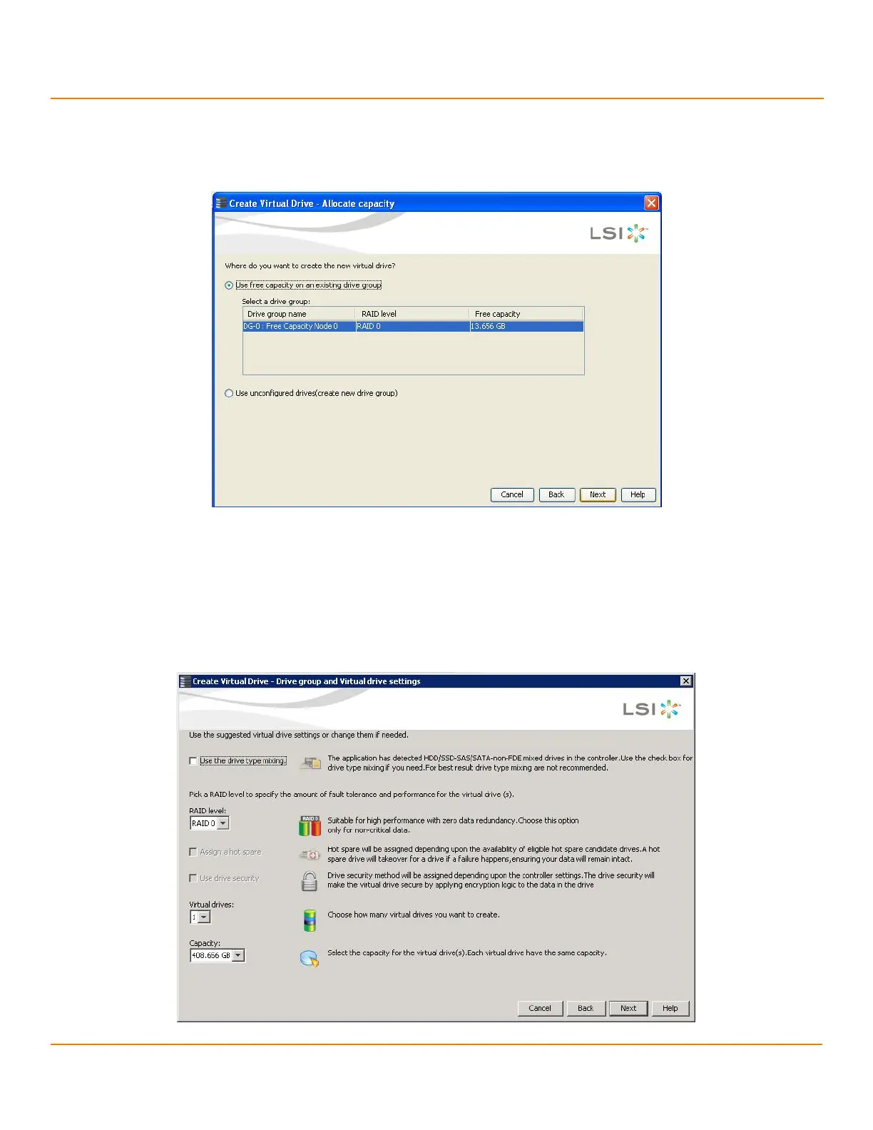 Continue with step 4. The Create Virtual Drive window appears, as shown in the following figure. If different