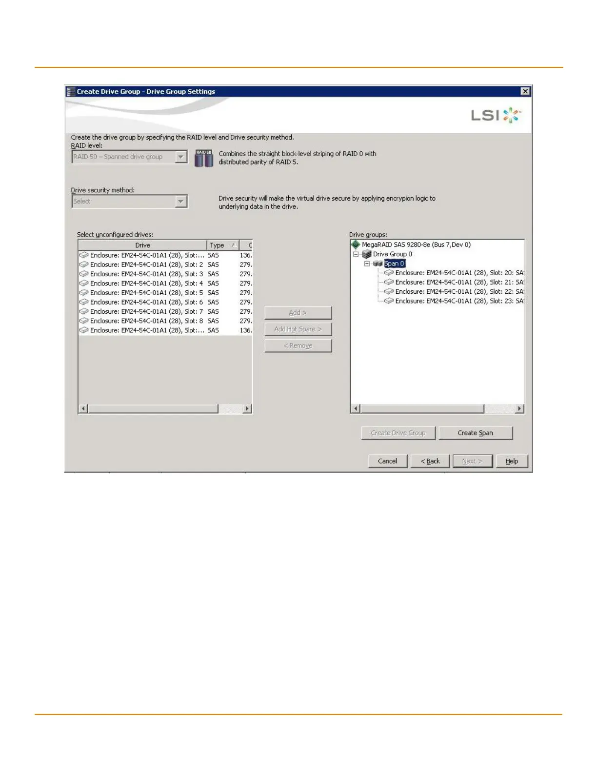 d. Click Create Span to create a second span in the drive group.