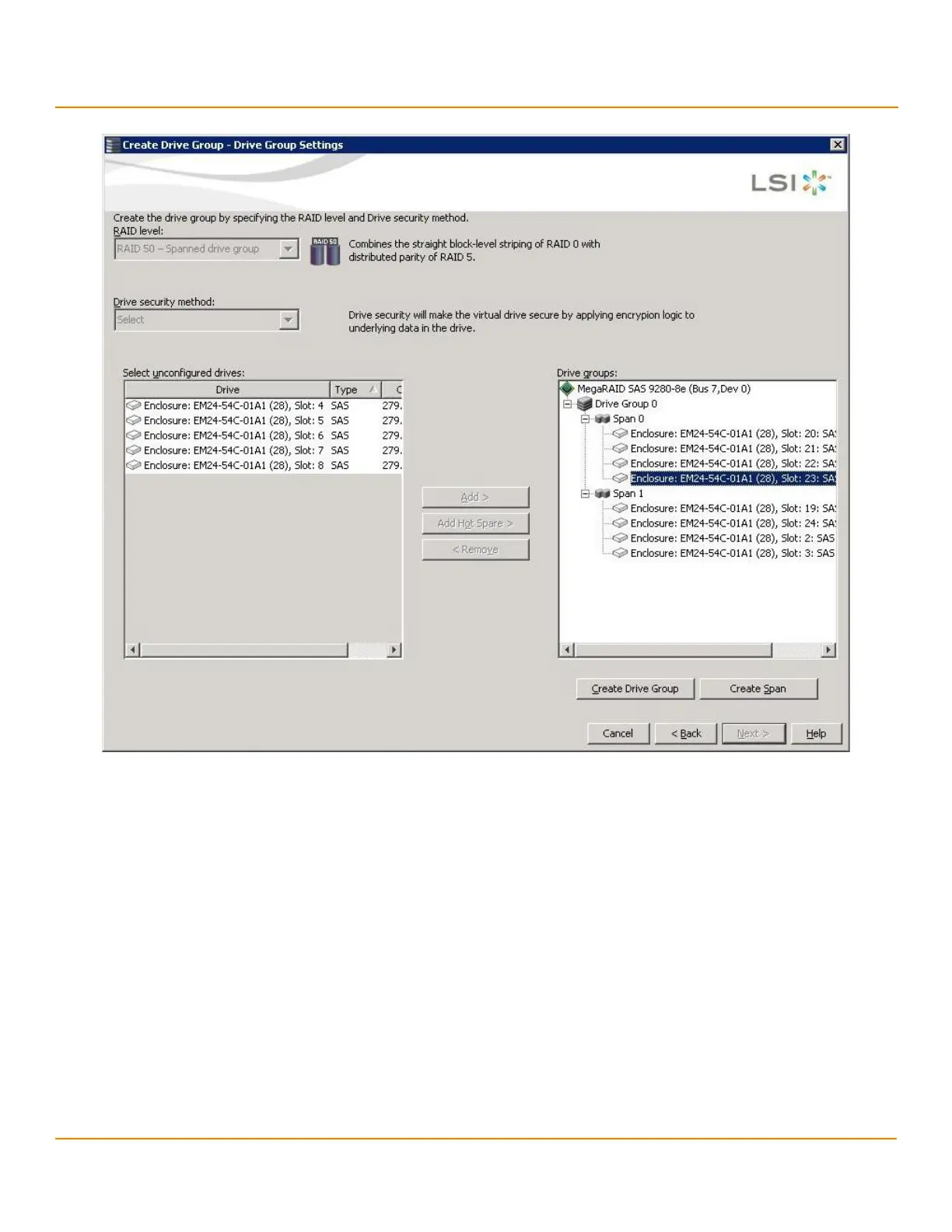 f. Click Create Drive Group to make a drive group with the spans.