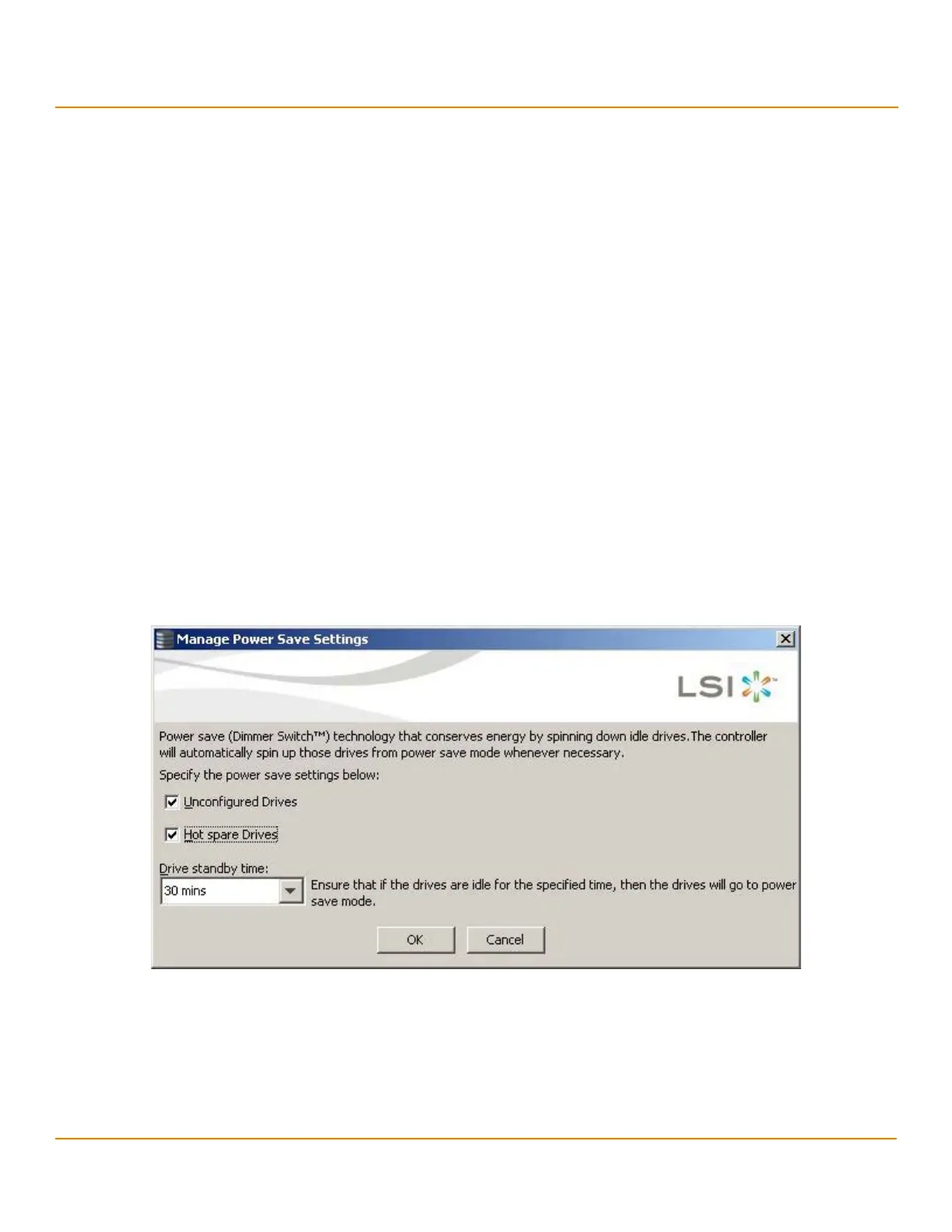 You can use the Power Settings field in the MegaRAID Storage Manager software to choose whether to allow
