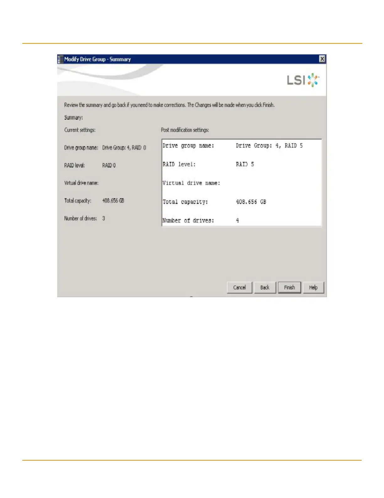 8. Click Yes to accept and complete the migration to the new RAID level.