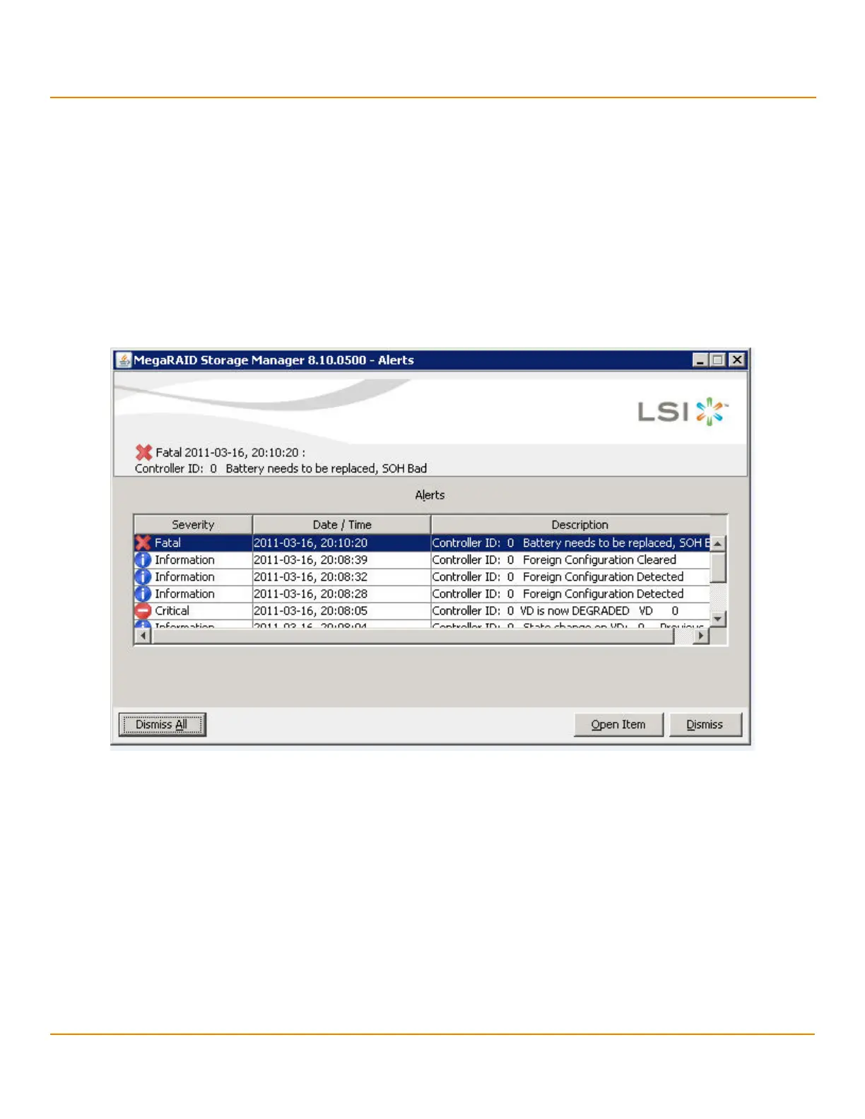 If the MegaRAID Storage Manager Framework connects to a VMware ESXi server, an additional read only field Event