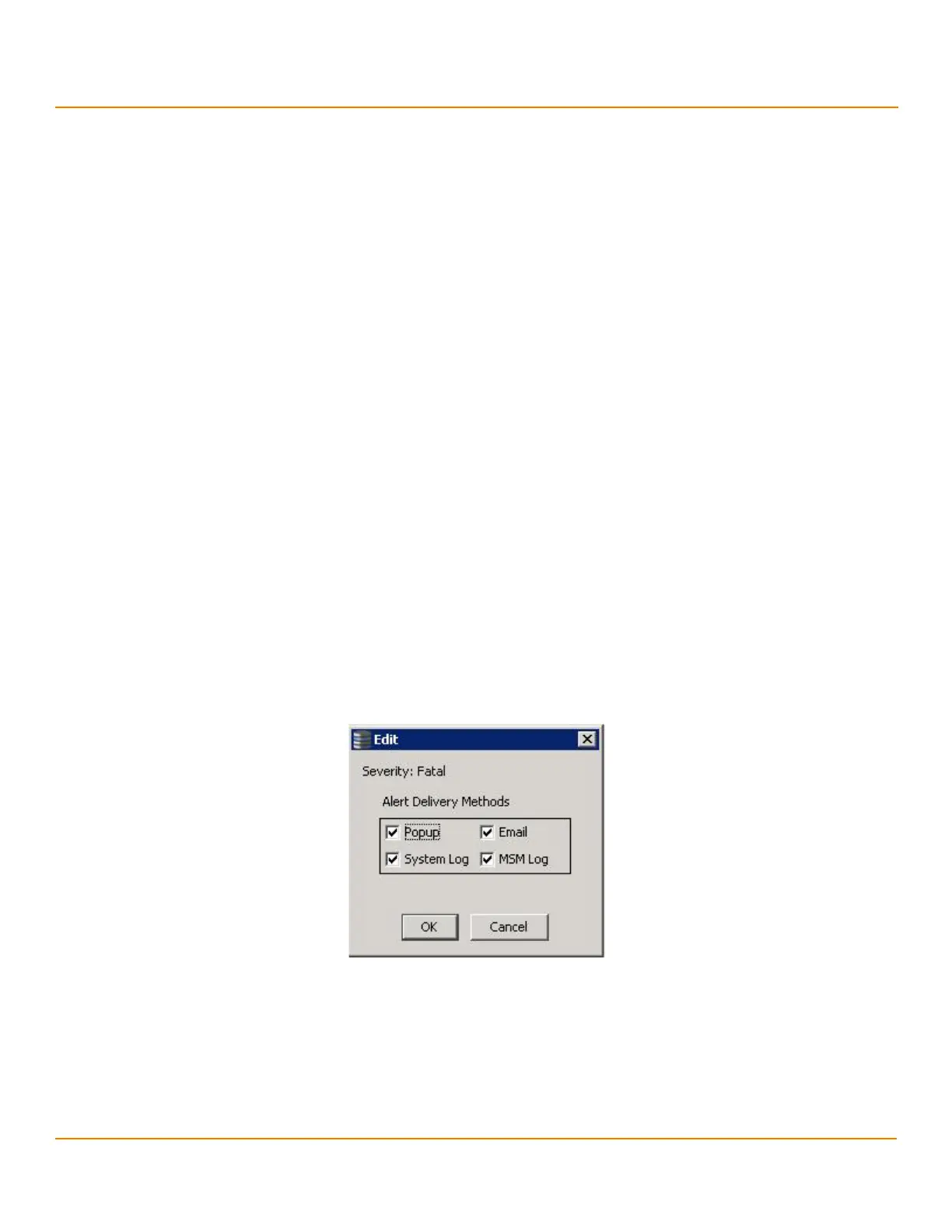 You can edit the default alert delivery methods, such as pop-up, email, system log, or the Vivaldi Log/MegaRAID