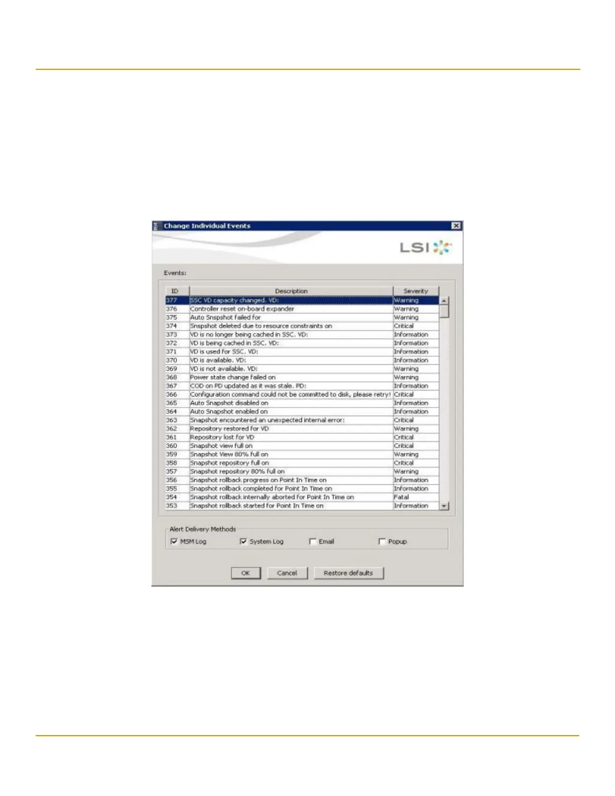 The Change Individual Events dialog appears, as shown in the following figure. The dialog shows the events by