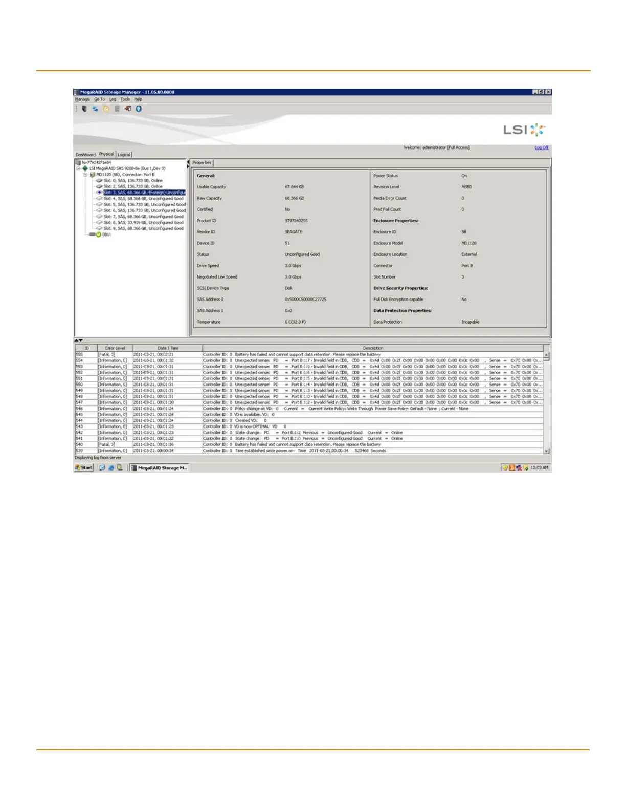 3. To stop the drive light on the enclosure from blinking, select Go To > Physical Drive > Stop Locating Drive.