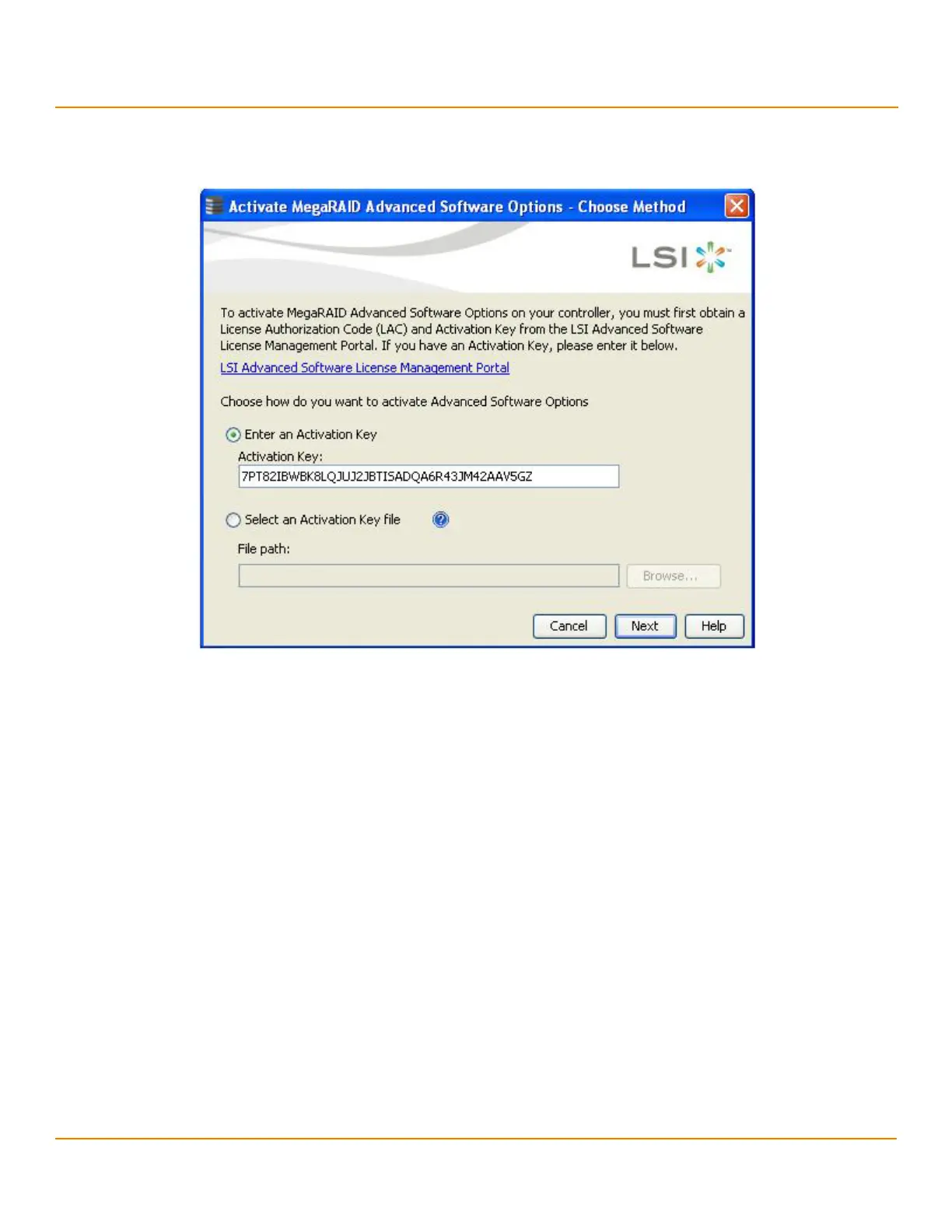 1. Click the LSI Advanced Software License Management Portal link to obtain a license authorization code (LAC)