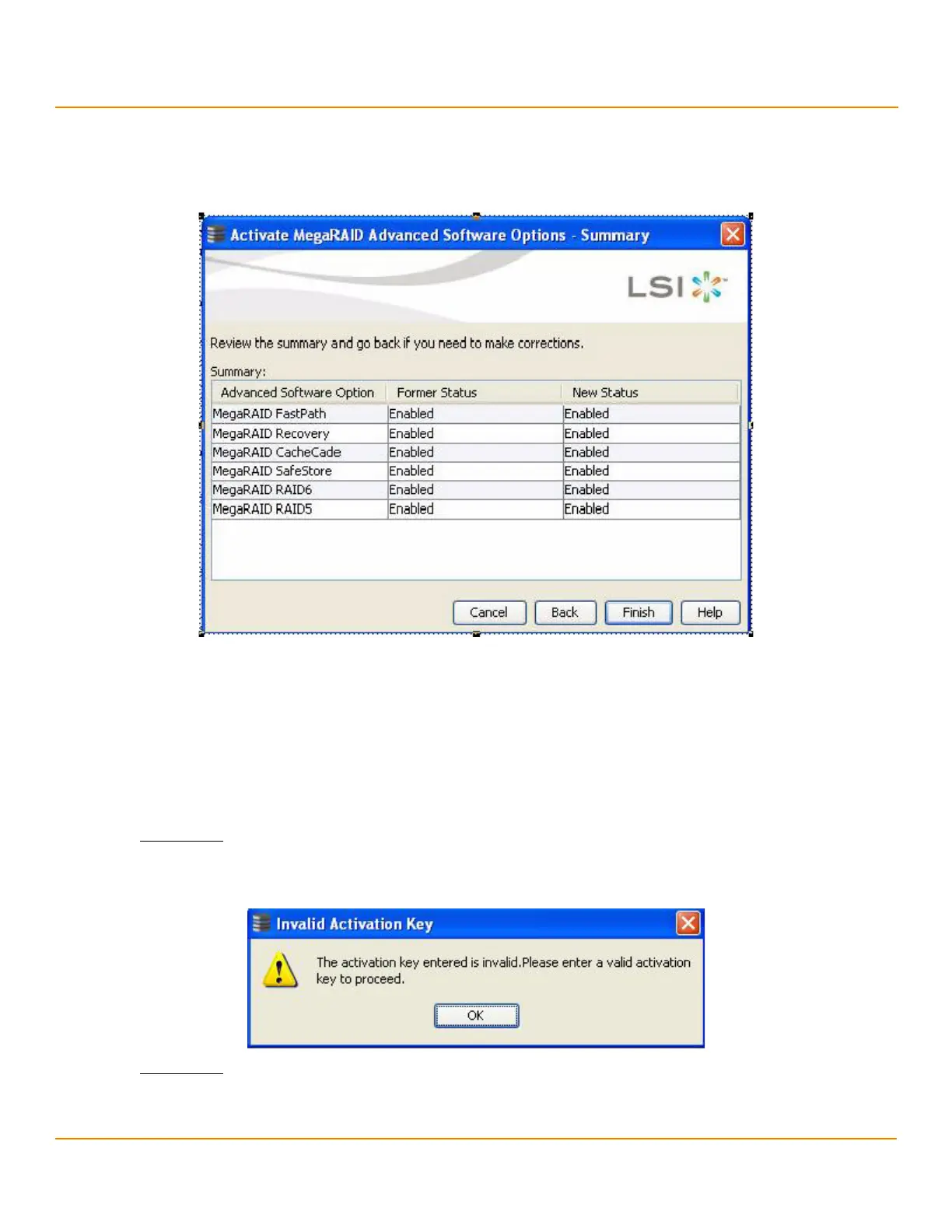 Figure 204 Activate MegaRAID Advanced Software Options - Summary Dialog