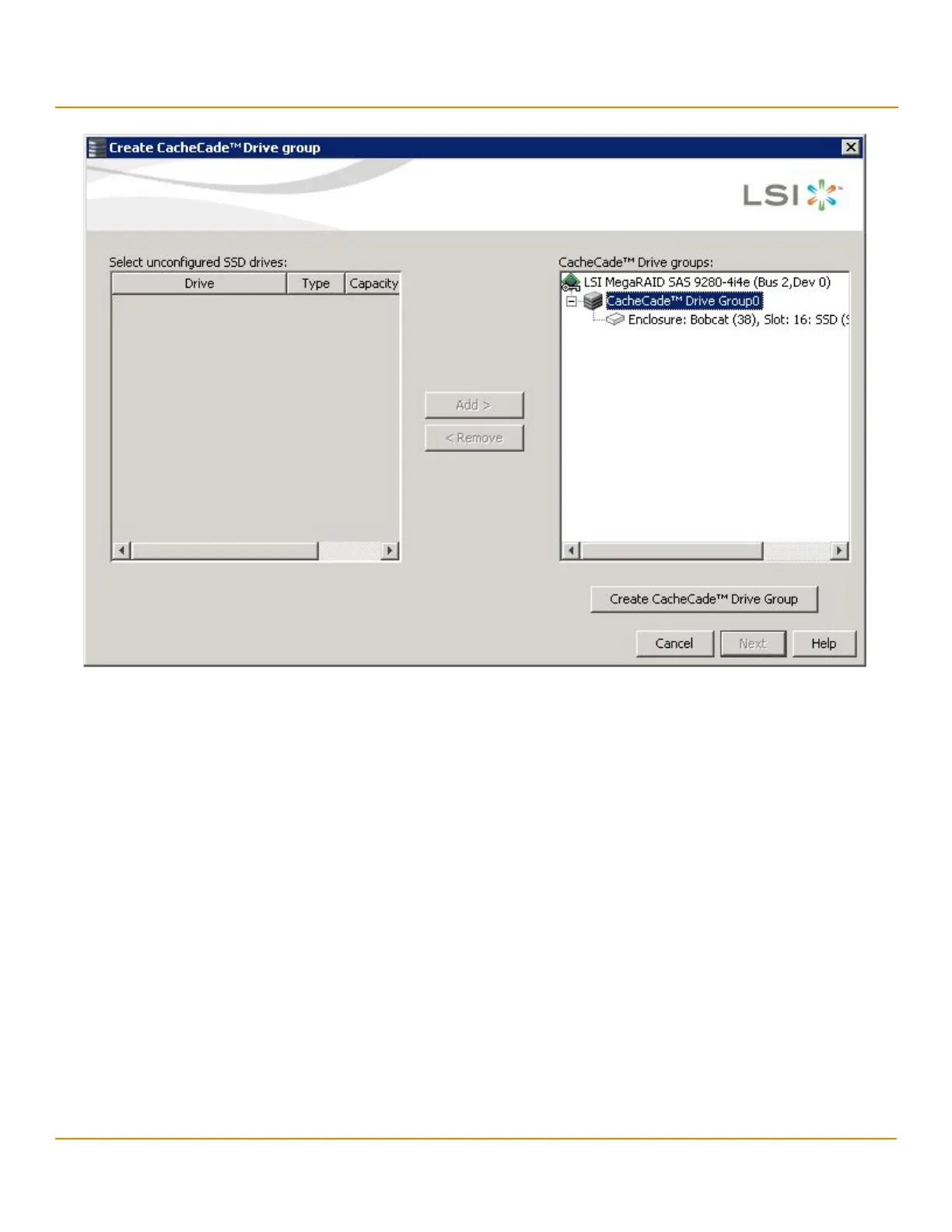 The CacheCade drive group icon appears in the menu dialog, as shown in the following figure.