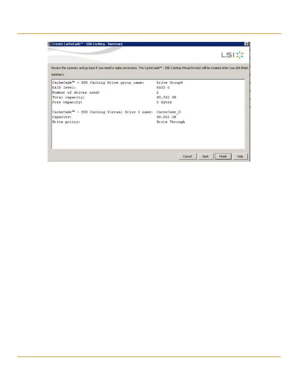 Figure 218 CacheCade Virtual Drive Summary Dialog