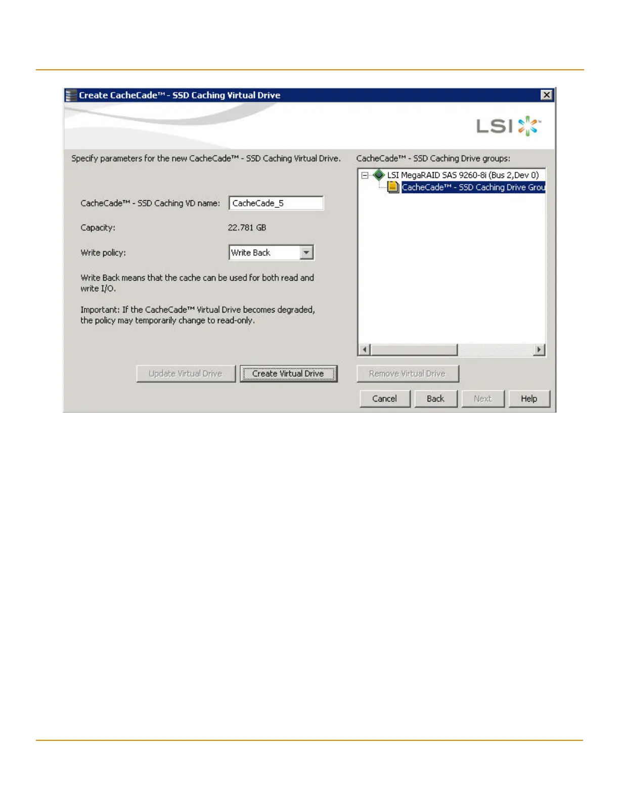 7. Enter a name for the CacheCade virtual drive in the CacheCade - SSD Caching VD name field.
