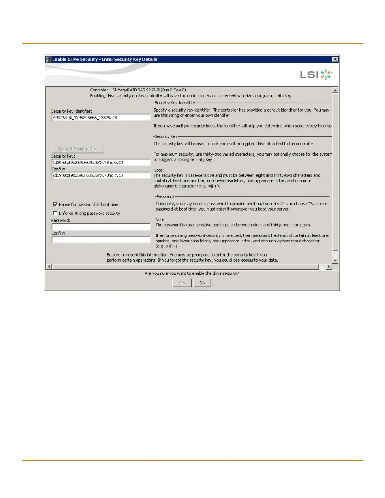 Figure 230 Enable Drive Security - Security Key