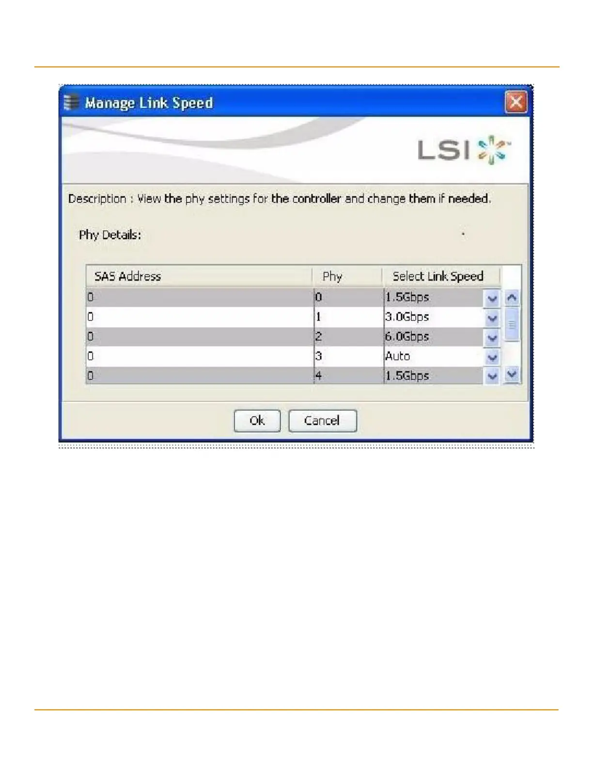 — The Phy column displays the system-supported phy link values. The phy link values are from 0 through 7.