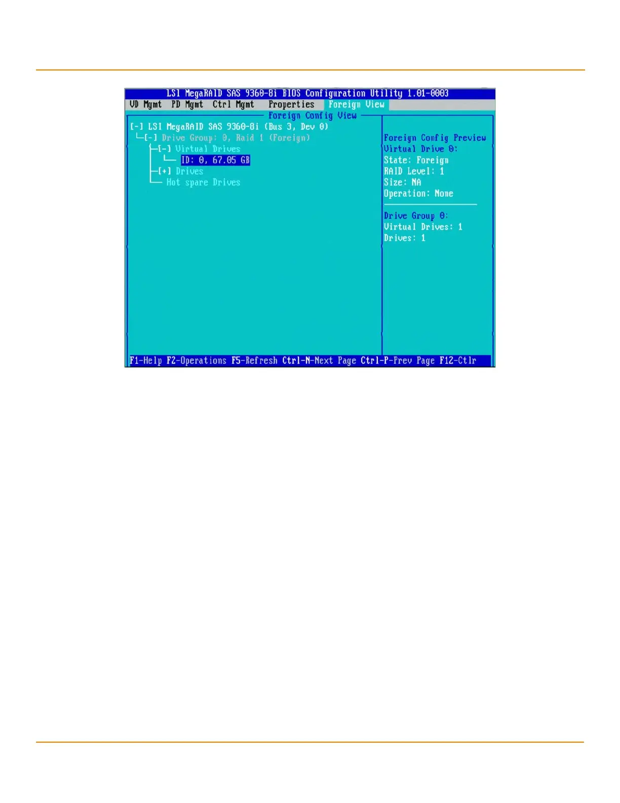 You can use the Foreign Config View screen to view information about the foreign configuration, such as drive