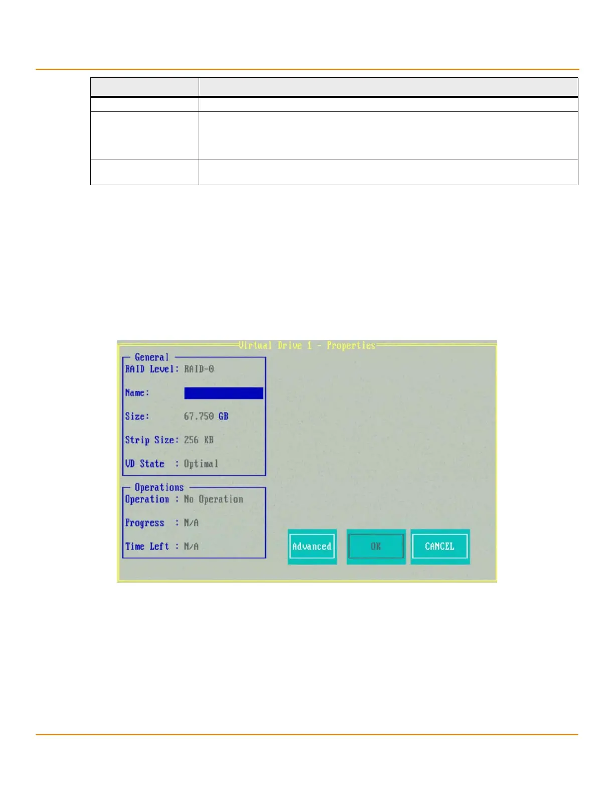 5. Press Advanced to view additional virtual drive properties.