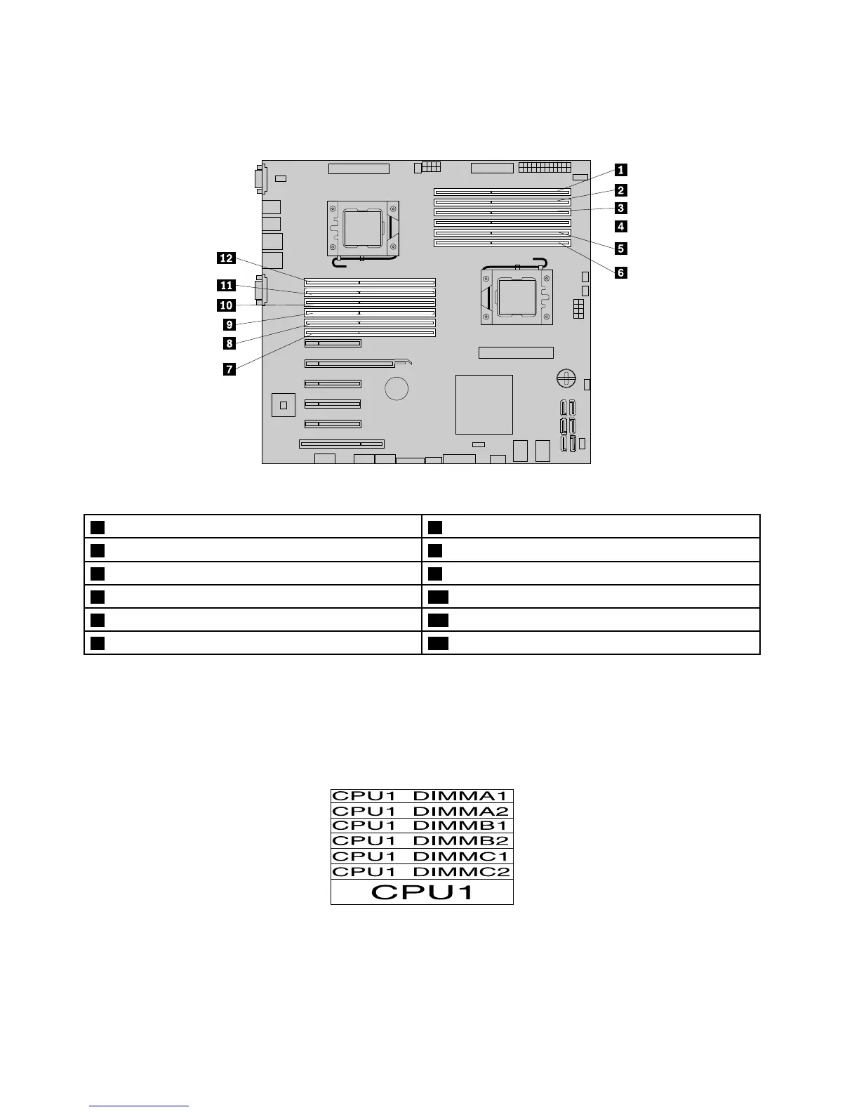 Thefollowingillustrationshowsthelocationsofallmemoryslotsonasystemboardthathastwo