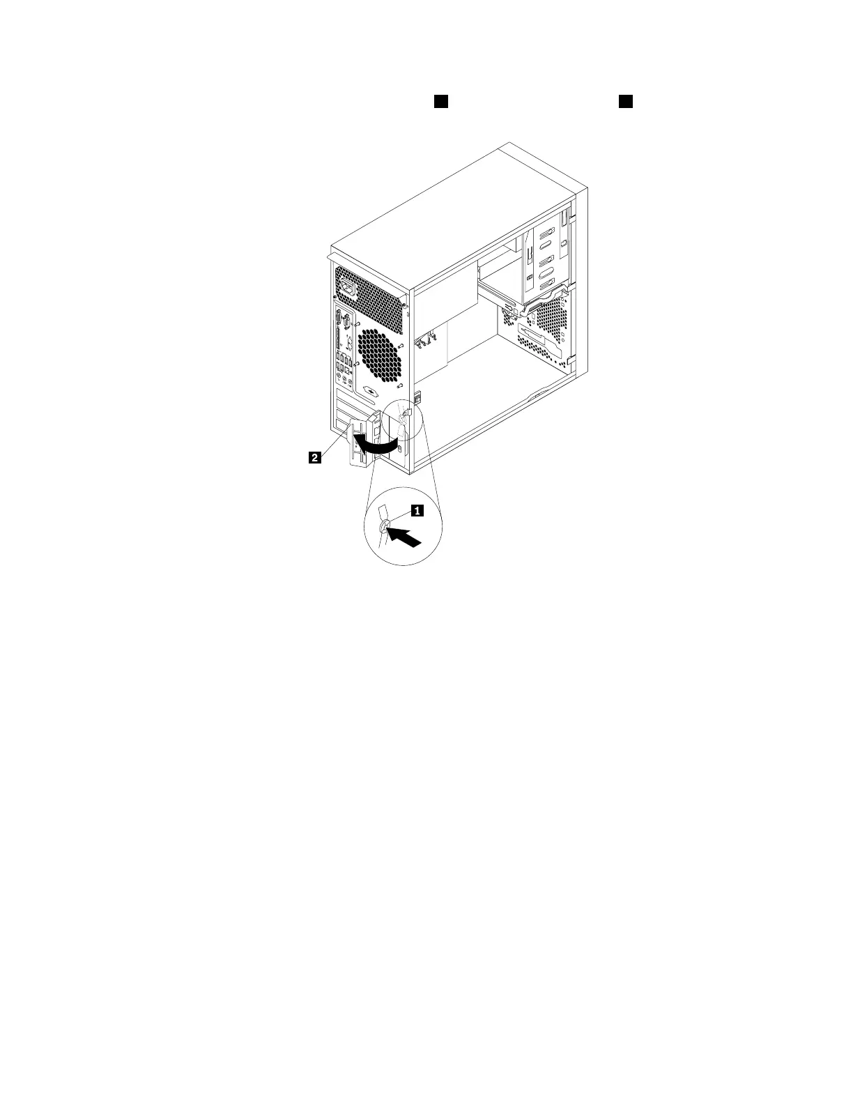 3.Attherearoftheserver,pressthereleasebutton1toopenthePCIcardlatch2.