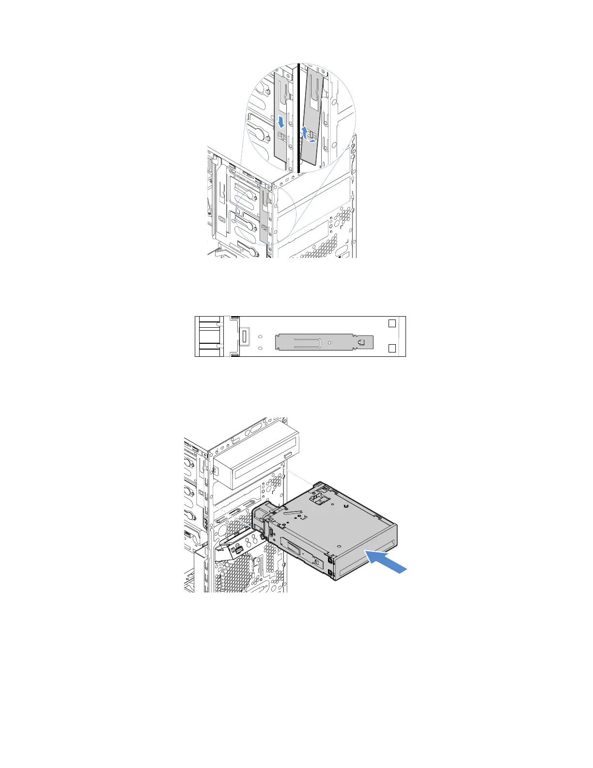8. Slide the 5.25-inch convertor kit into the drive bay until it snaps into position.