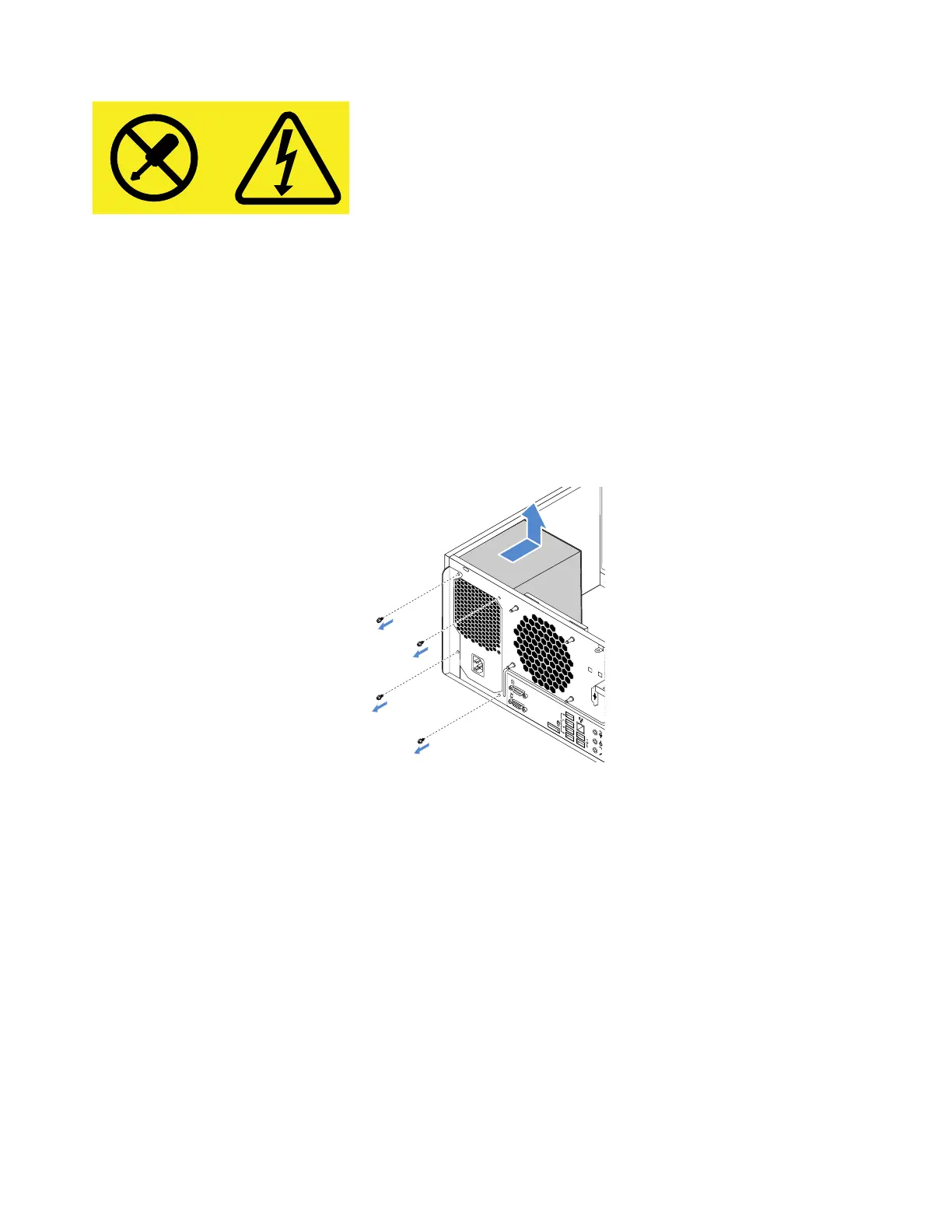4. Remove the four screws, slide the power supply assembly a little bit forward, and then lift it out of the