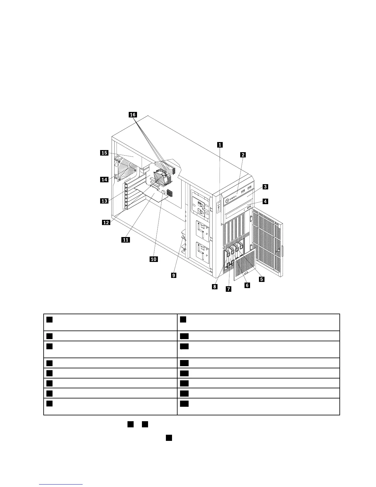 •Formoreinformationabout1to4,see“Frontviewoftheserver”onpage15.