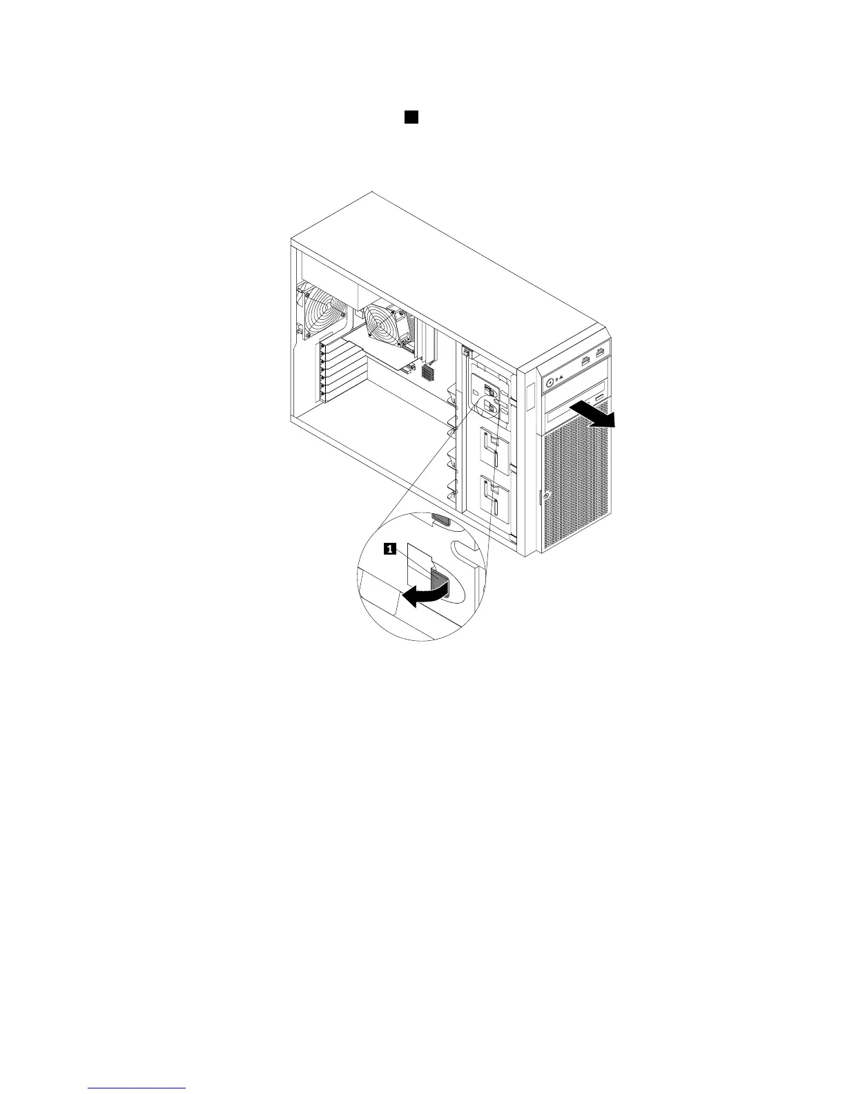 theopticaldrive.Pressthereleasebutton1inthedirectionasshownandpushtheopticaldrive