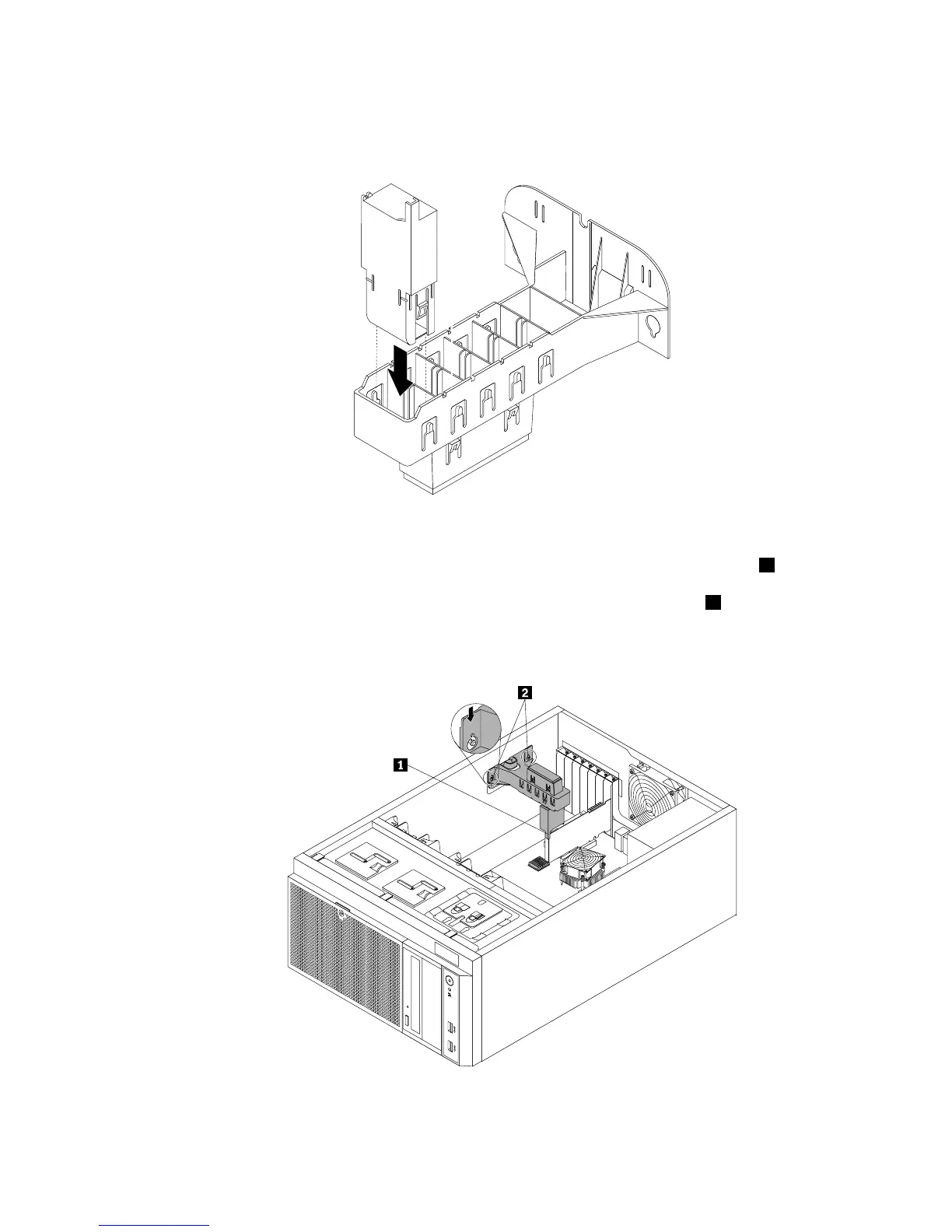 b.PlacethePCIcardbracketassemblyintothechassissothatthetworetentionposts2onthe
