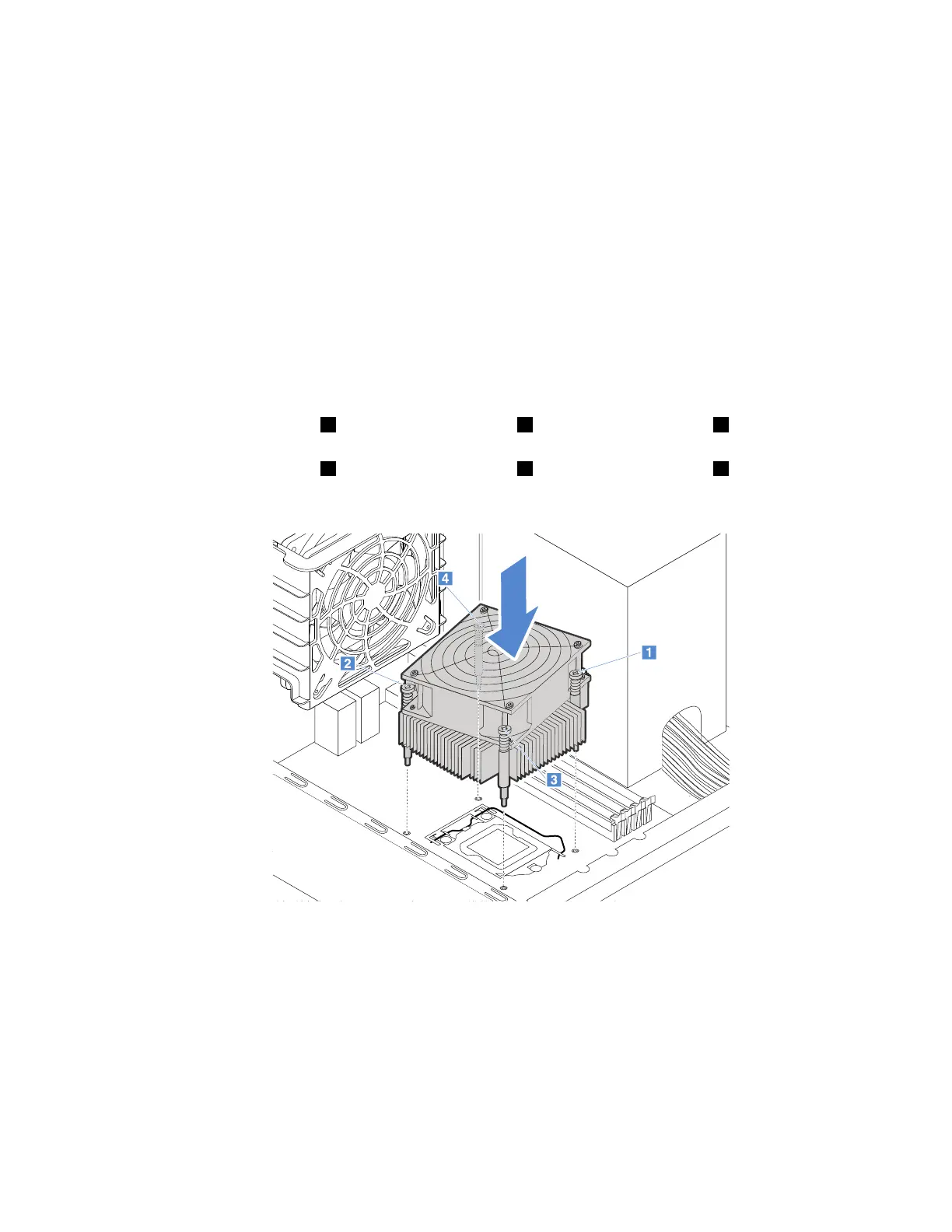 4.Placethenewheatsinkandfanassemblyonthesystemboardsothatscrewsonthenewheatsinkand