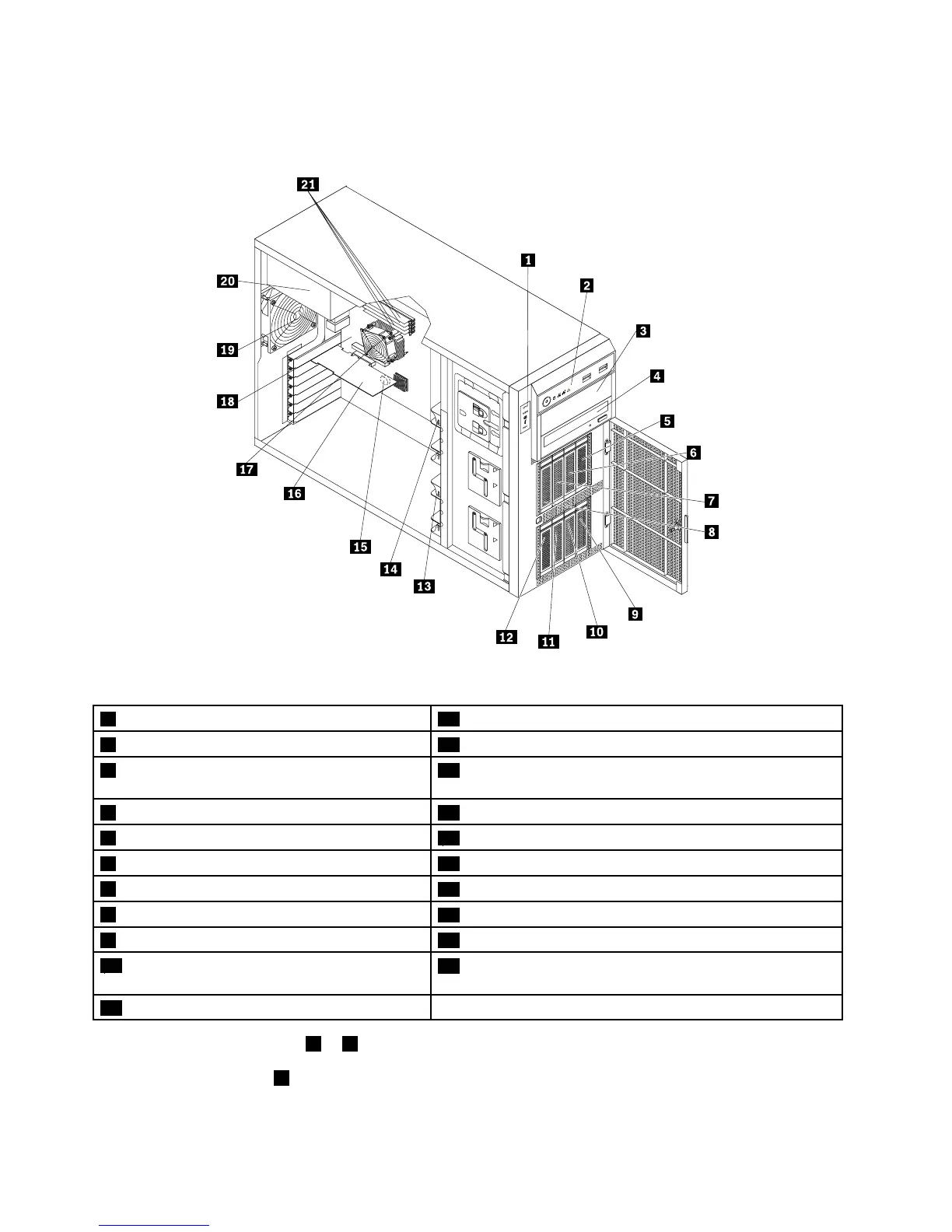 •Formoreinformationabout1to4,see“Frontviewoftheserver”onpage15.