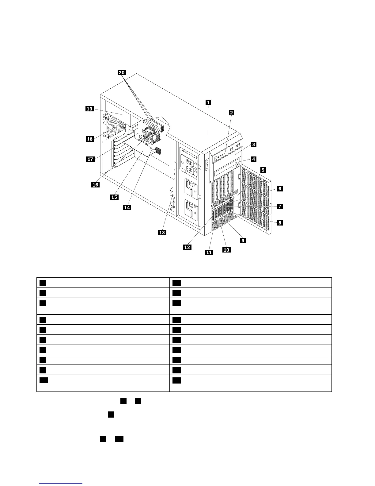 •Formoreinformationabout1to4,see“Frontviewoftheserver”onpage15.