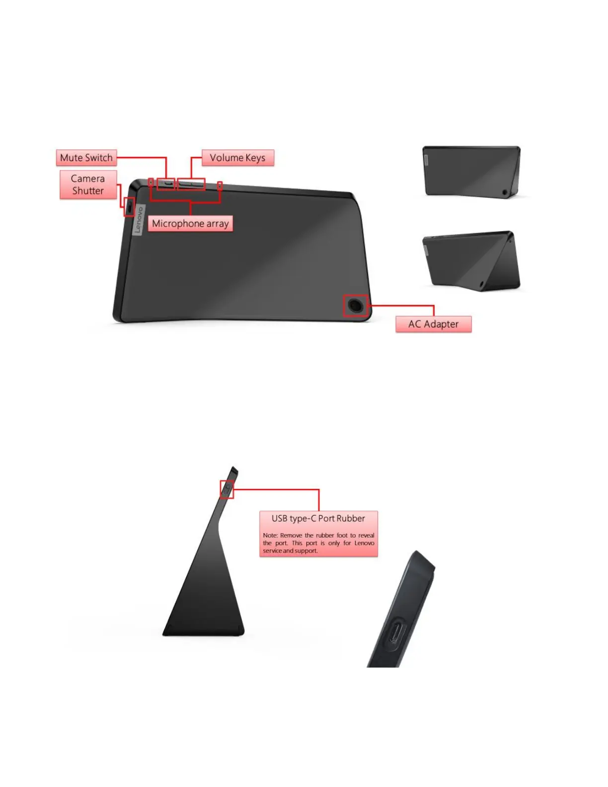 Lenovo ThinkSmart View - Rear View; Portrait Side View