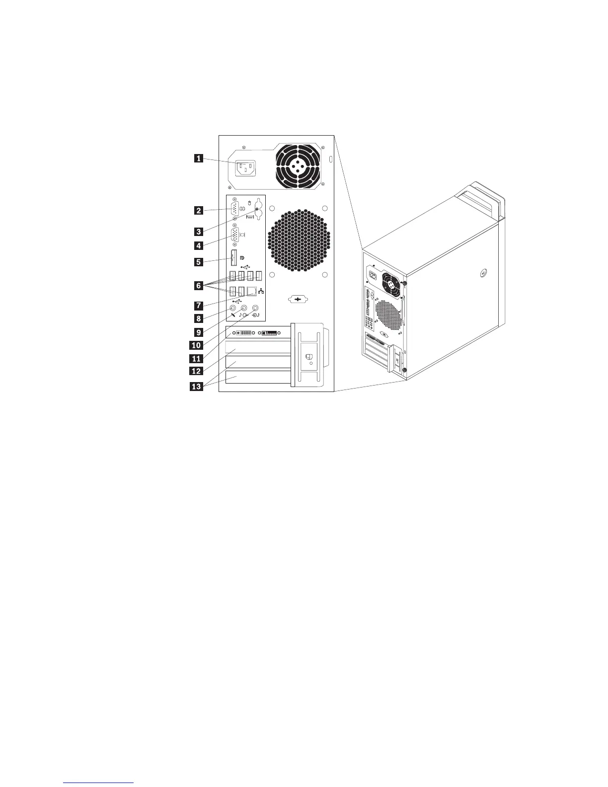 Obrázok 2 zobrazuje umiestnenia konektorov na zadnej strane počítača. Niektoré konektory v
