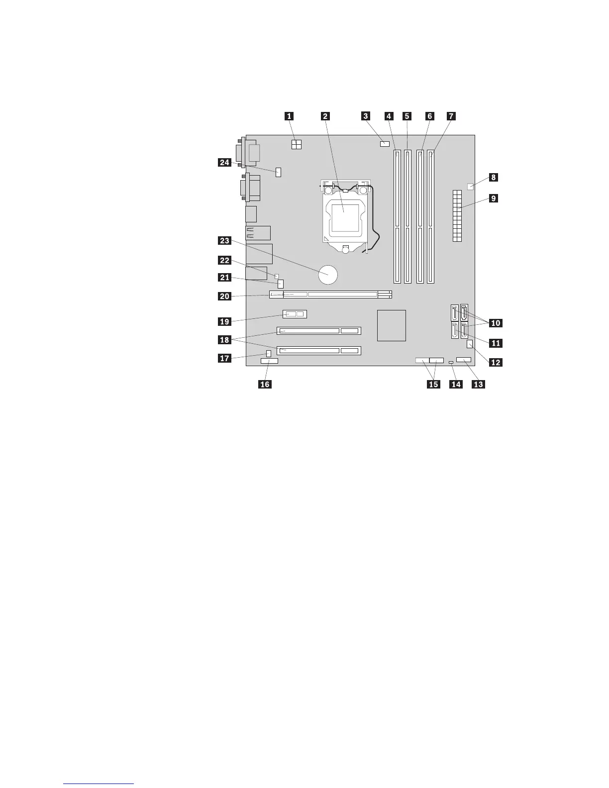 8 Connecteur du détecteur thermique 20 Emplacement de carte graphique PCI