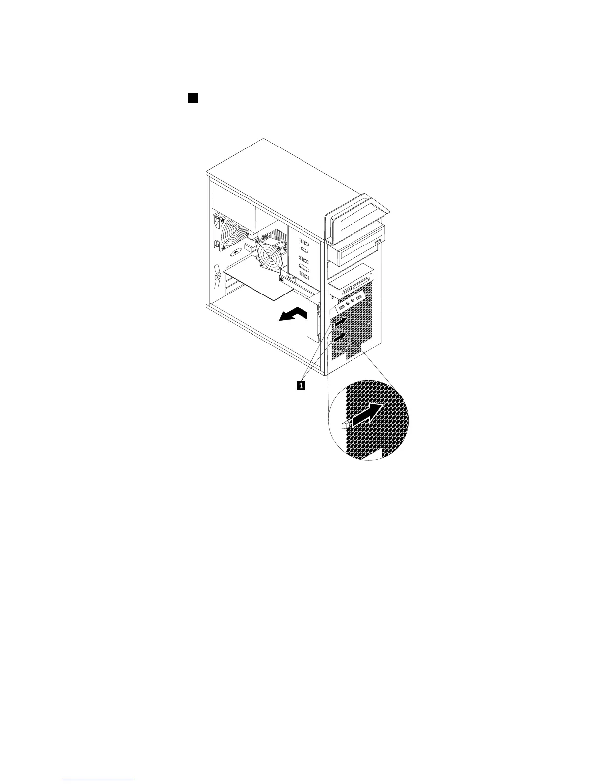 5.Ouvrezlesdeuxtaquets1quimaintiennentleblocdeventilationavantdansleboîtier,commeillustré,