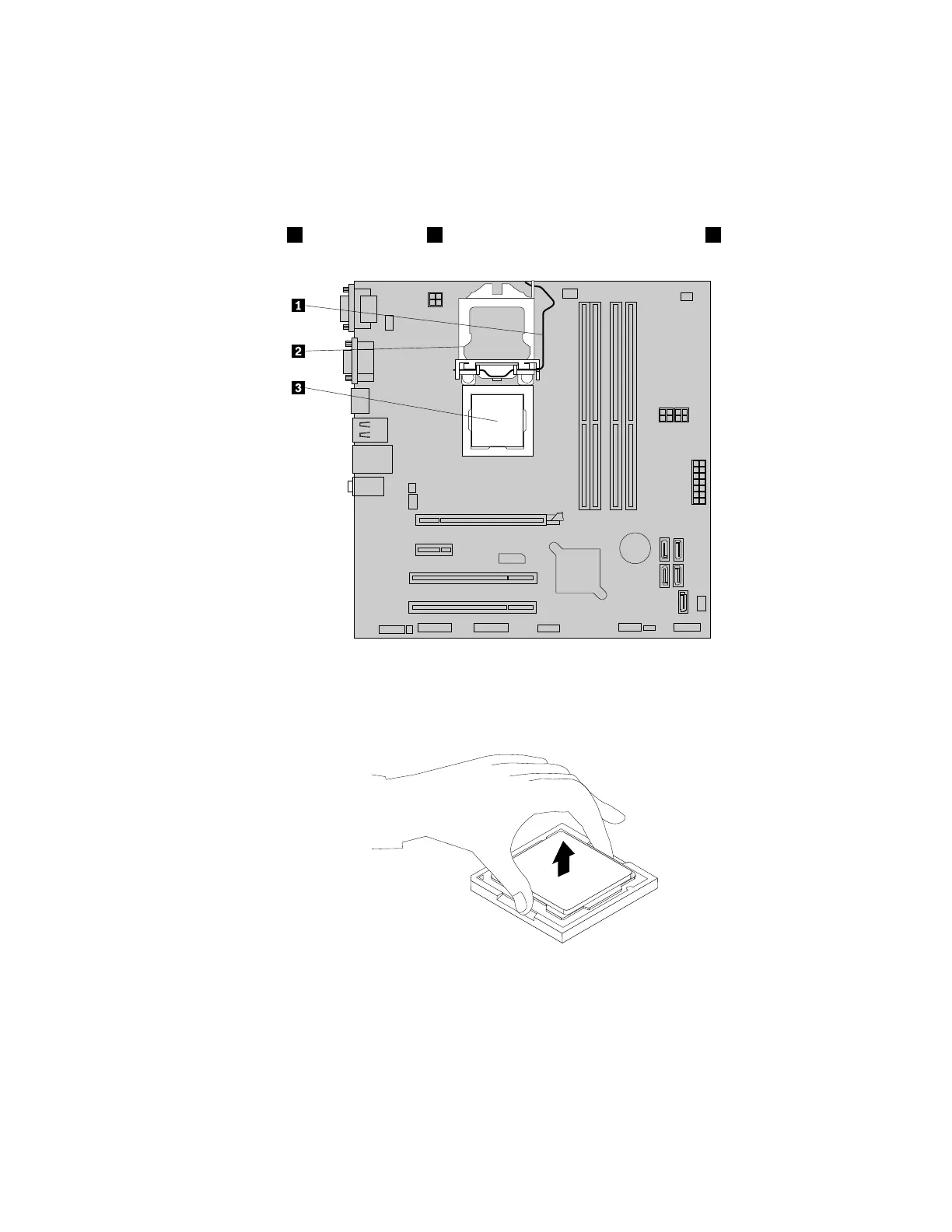 5.Løftdetlillehåndtag1,ogåbnholderen2foratfåadgangtilmikroprocessoren3.
