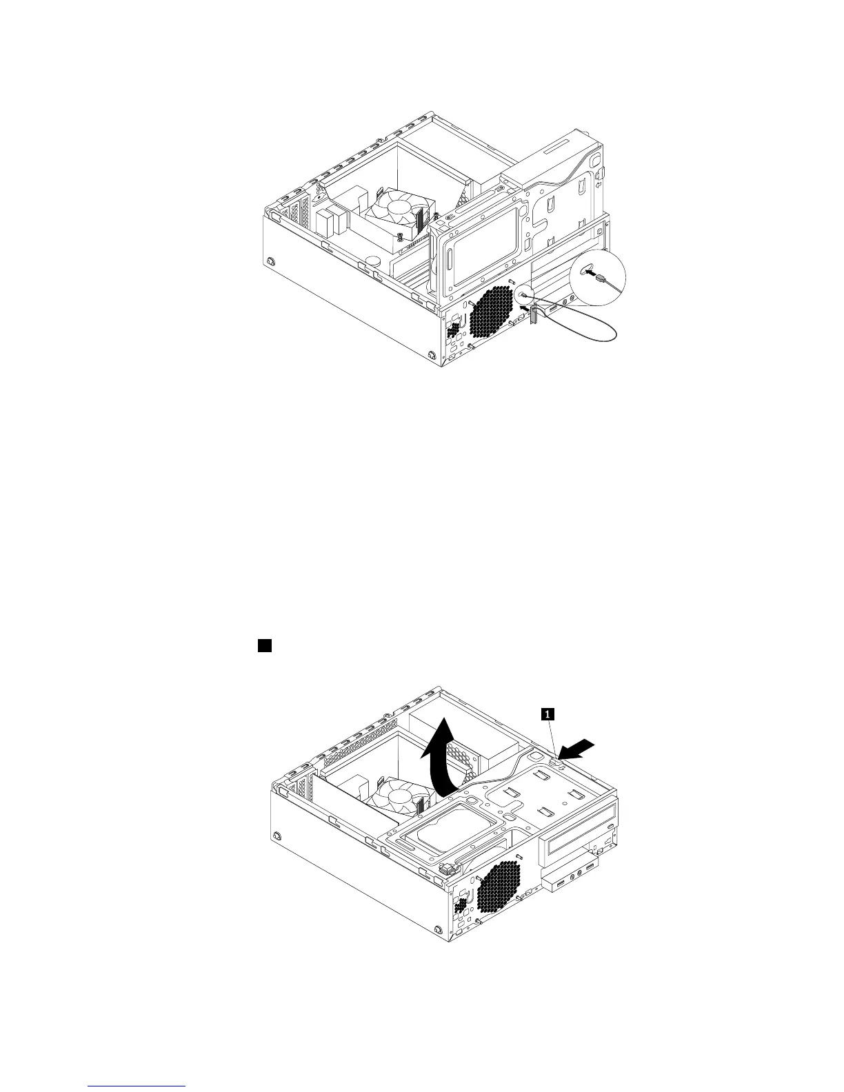 4.Pressthereleasetab1asshownandpivotthedrivebayassemblyupward.
