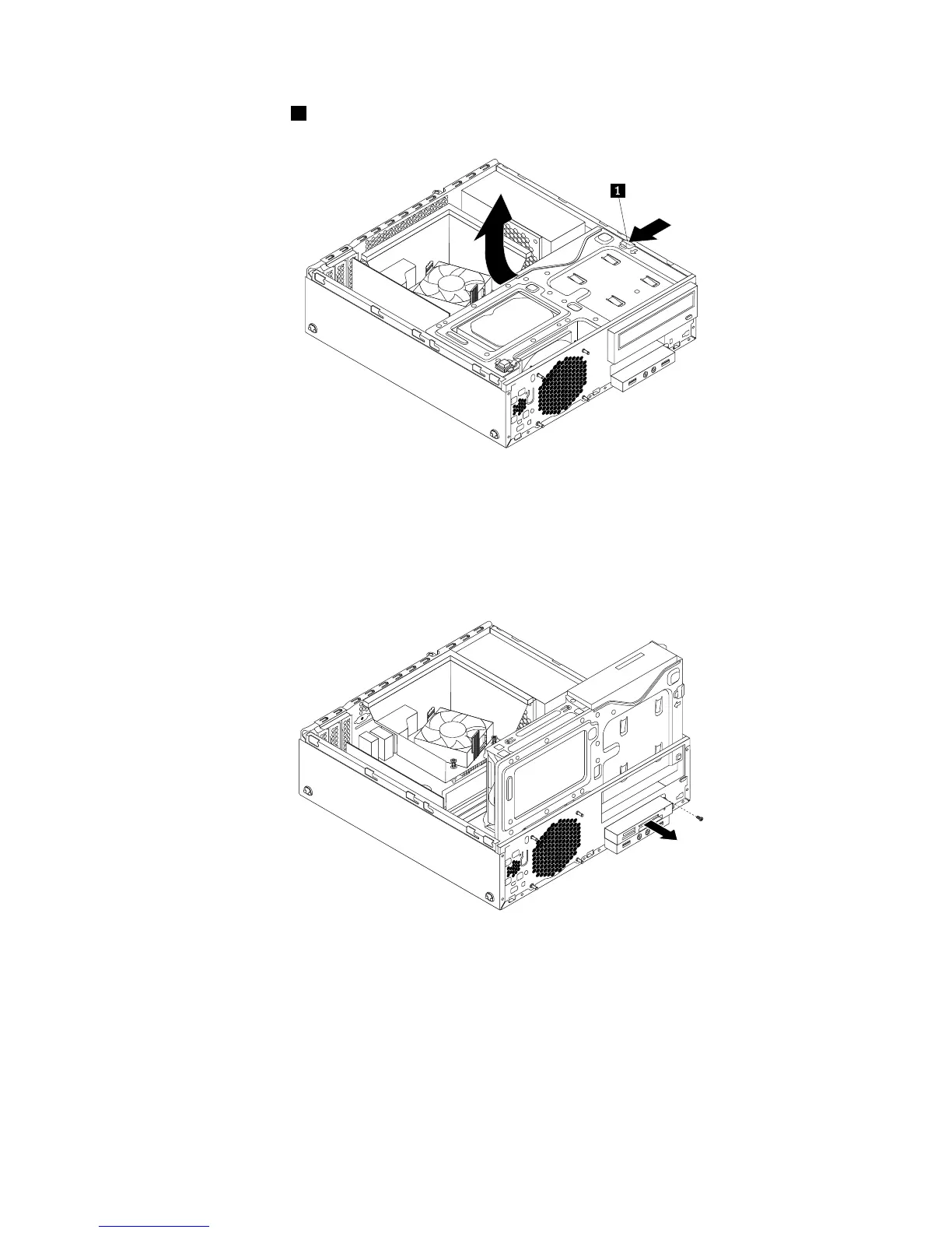 5.Pressthereleasetab1asshownandpivotthedrivebayassemblyupward.