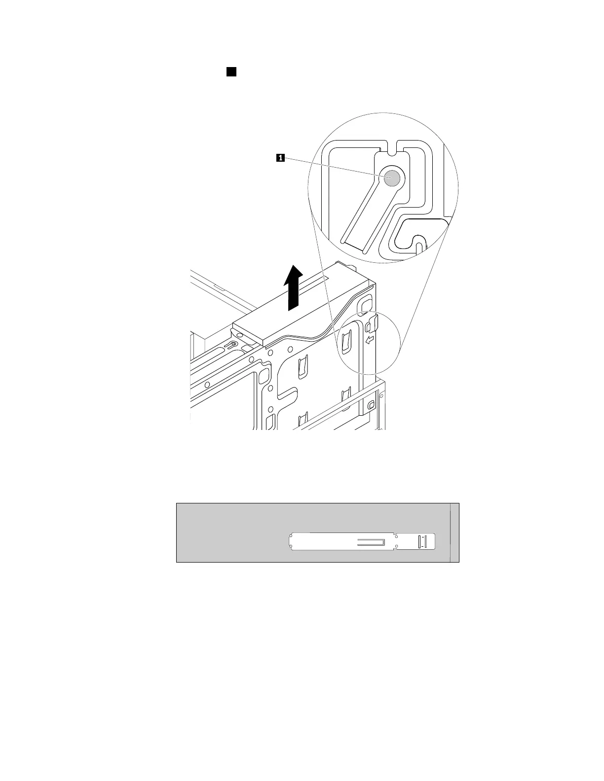b.Presstheoptical-drivelock1ontherightsideofthedrivebayassemblyandslidetheopticaldrive