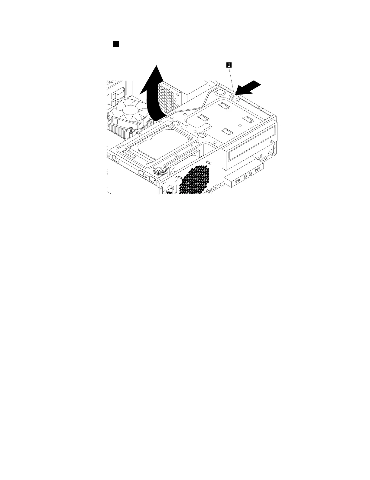 5.Pressthereleasetab1asshownandpivotthedrivebayassemblyupward.