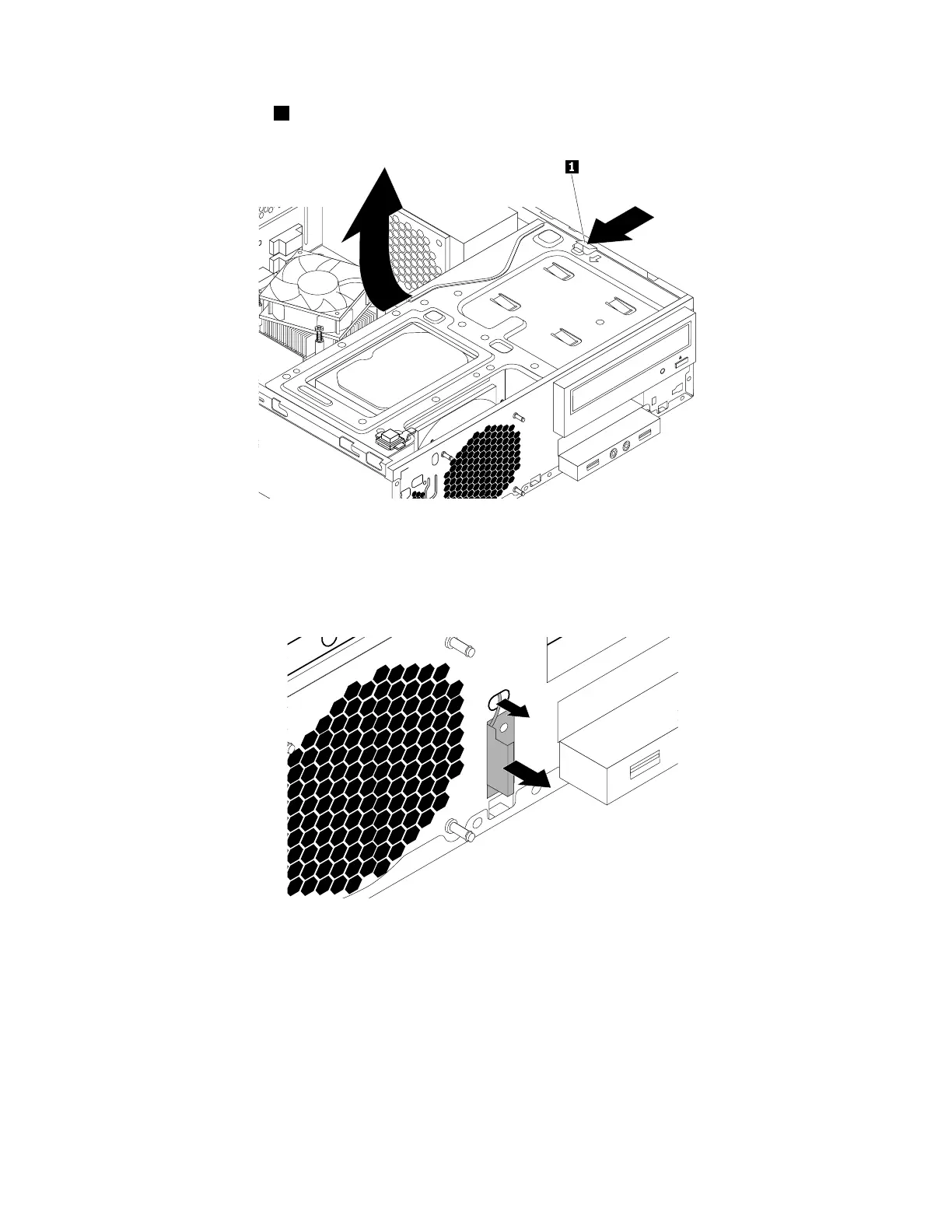 4.Pressthereleasetab1asshownandpivotthedrivebayassemblyupward.