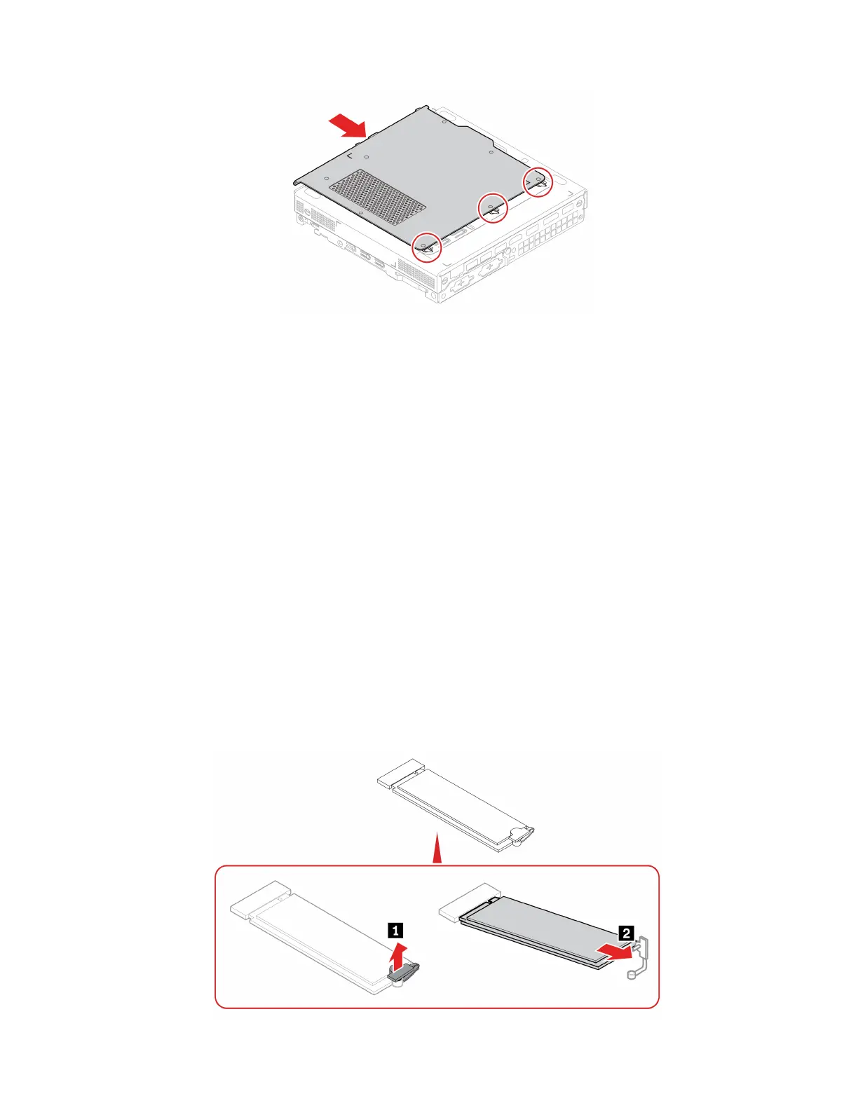 • Do not apply pressure to the M.2 solid-state drive.