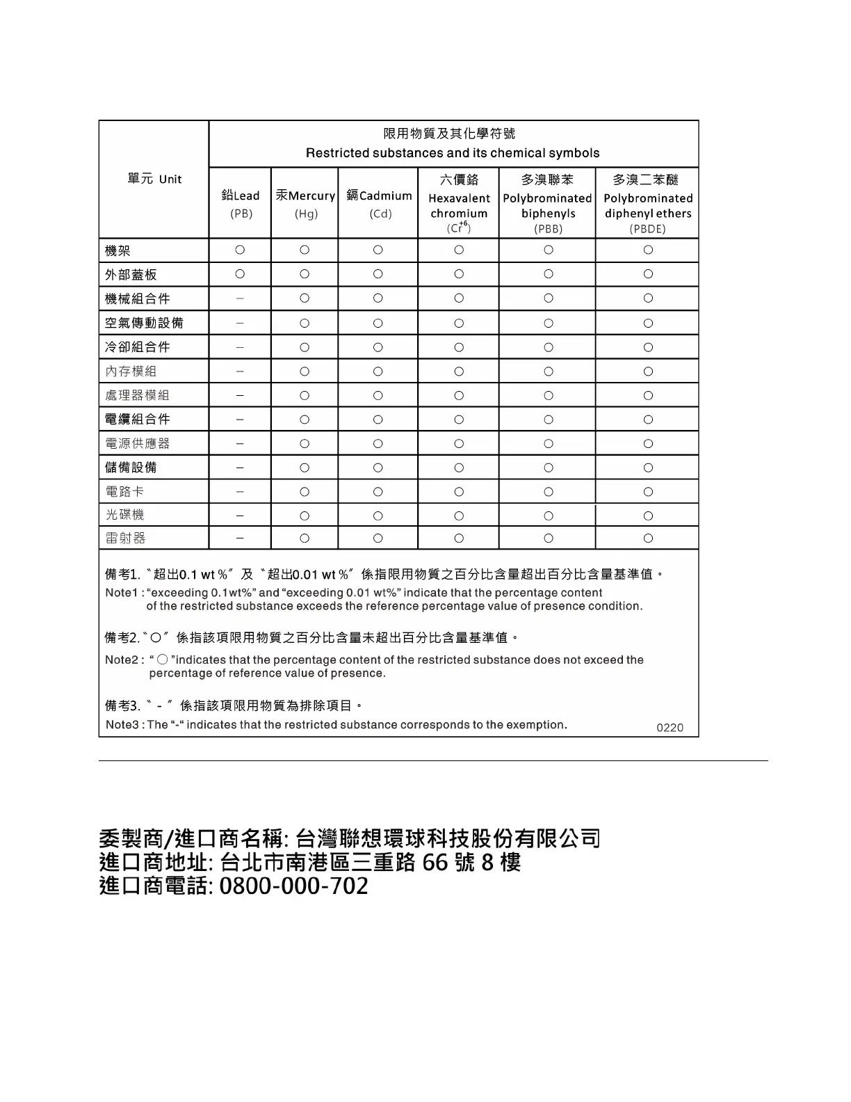 Lenovo ThinkSystem DG5000 - Taiwan Region BSMI Rohs Declaration; Taiwan Region Import and Export Contact Information