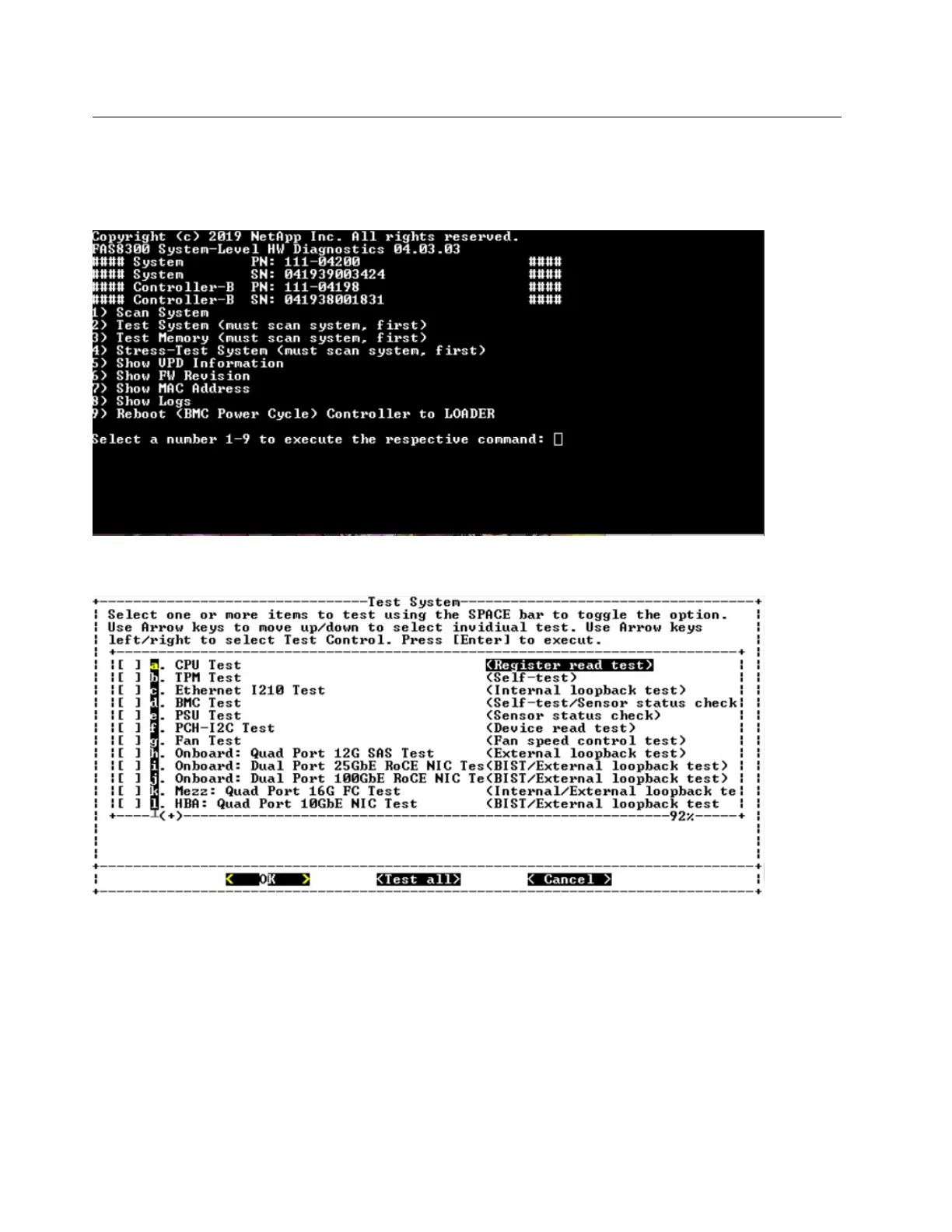 • Use the left and right arrow keys to select "Run", "Test All" or "Cancel":